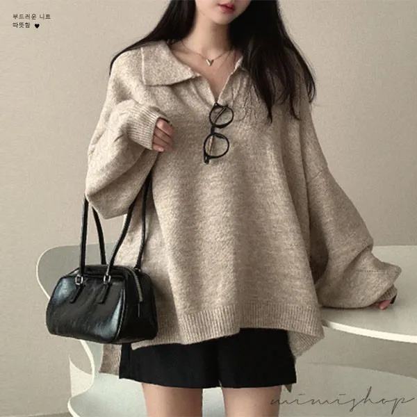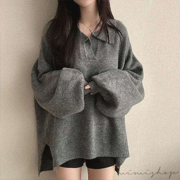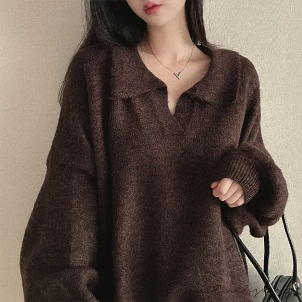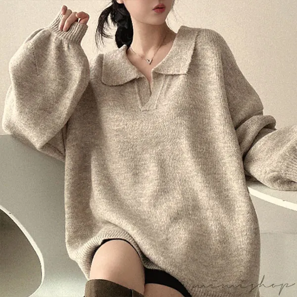 【P511316】溫暖有型 優質polo領毛衣針織衫 寬鬆百搭