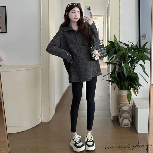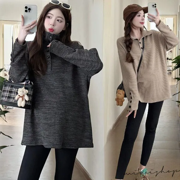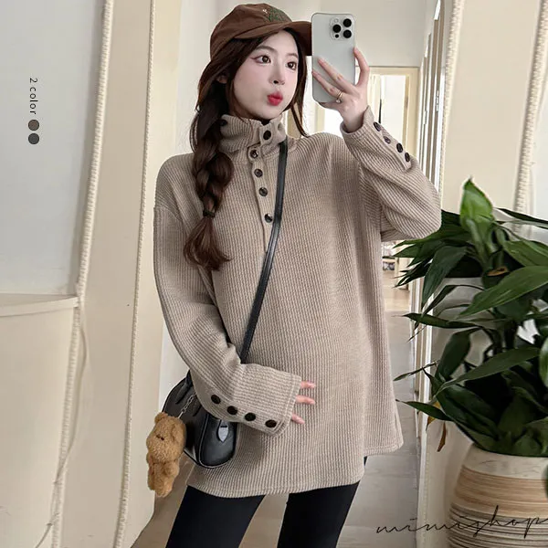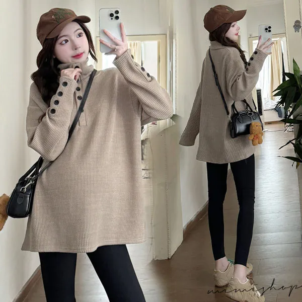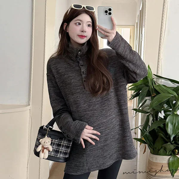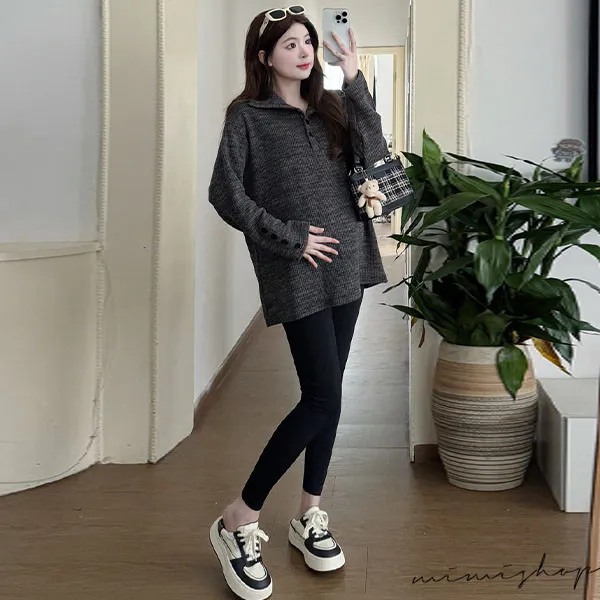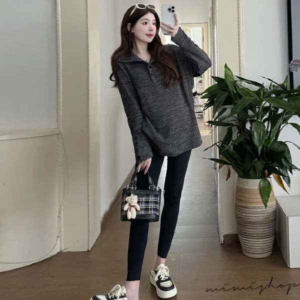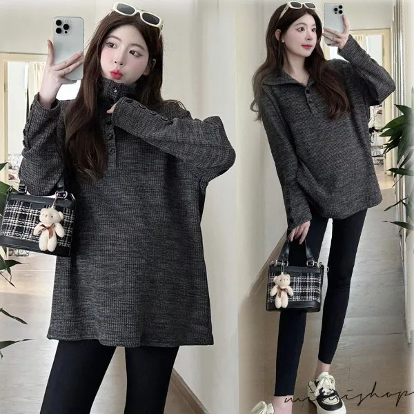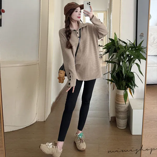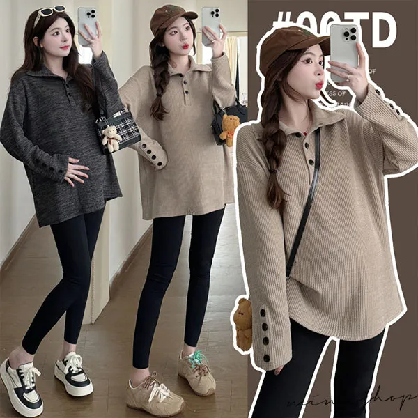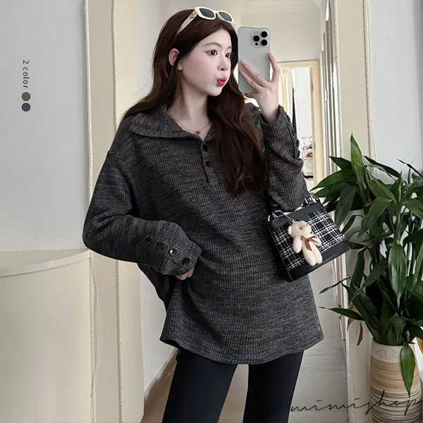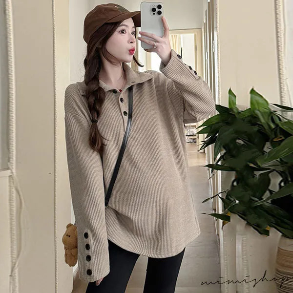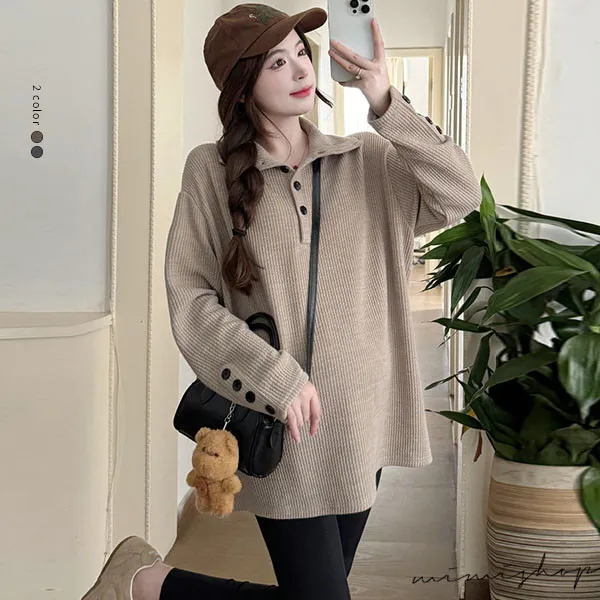【P511318】別緻翻領 寬鬆復古鈕扣上衣 柔感彈力 不限孕期