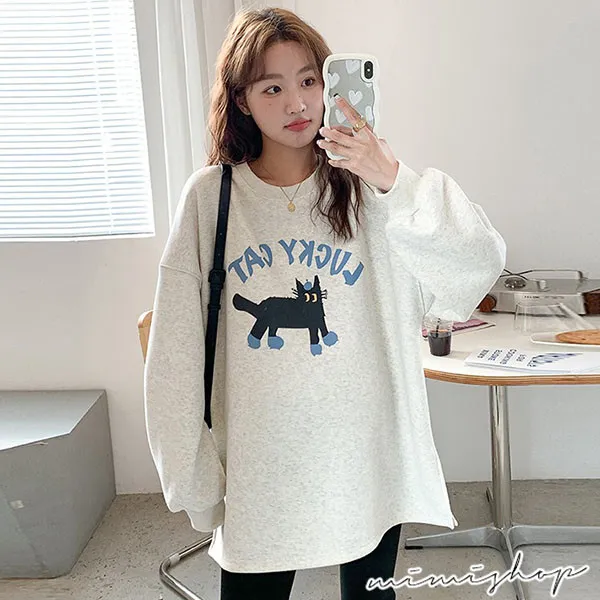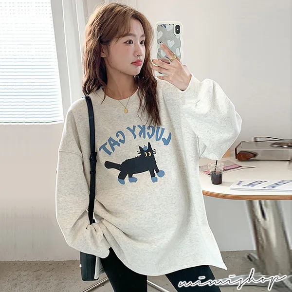 【P511323】Lucky cat 優質好搭寬版上衣 舒適推薦