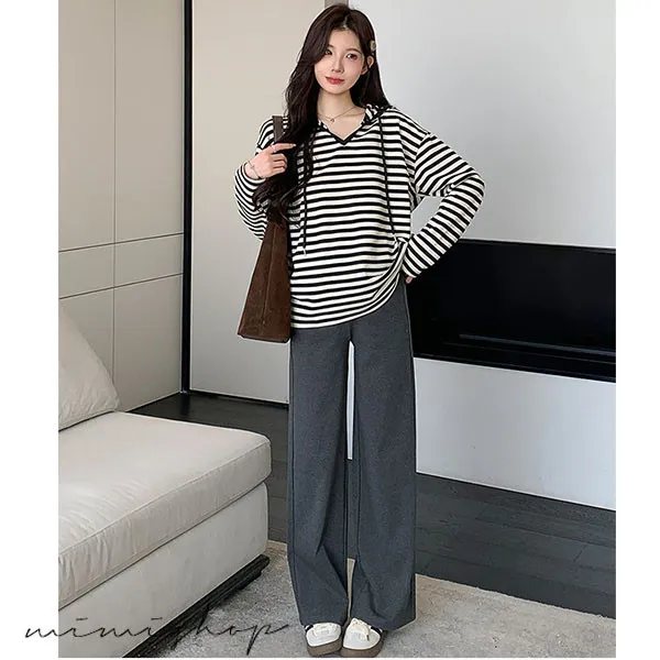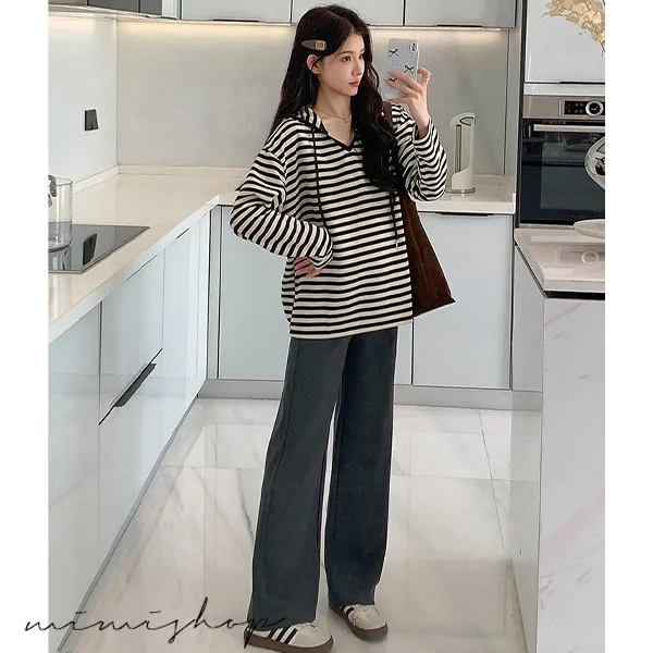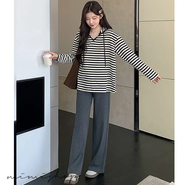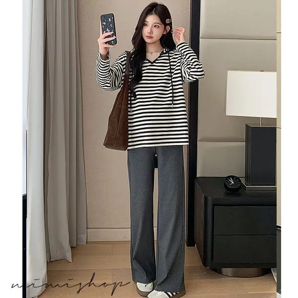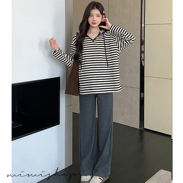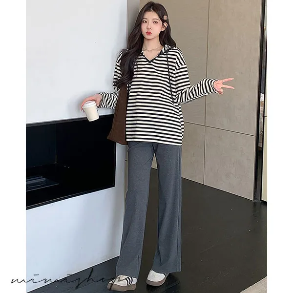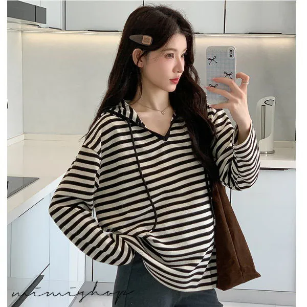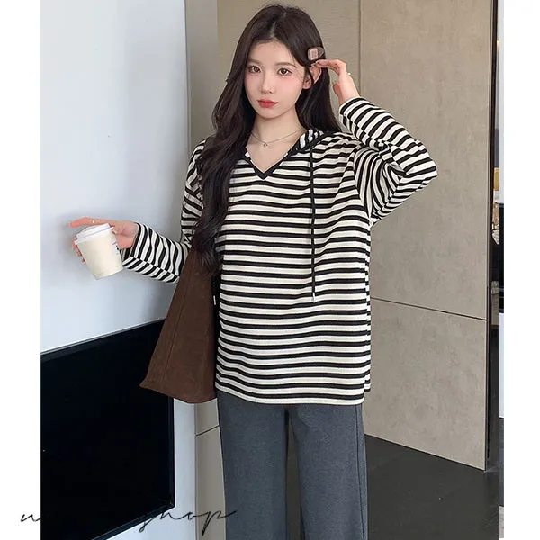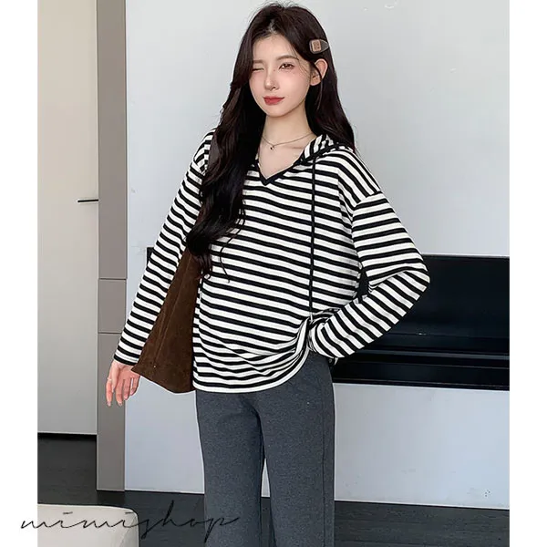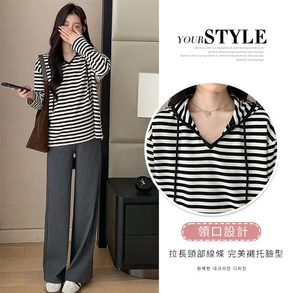 【P511329】基本百搭 連帽連紋寬版上衣 舒適推薦