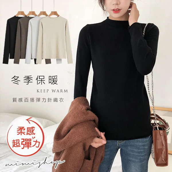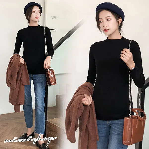 【P51771】繾綣首爾 純色立領針織上衣 內搭衣 彈力柔感升級
