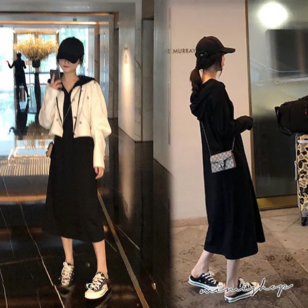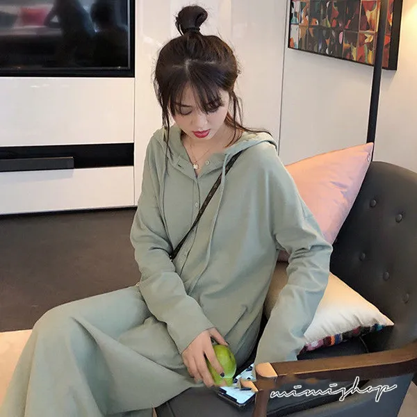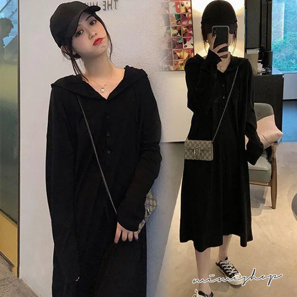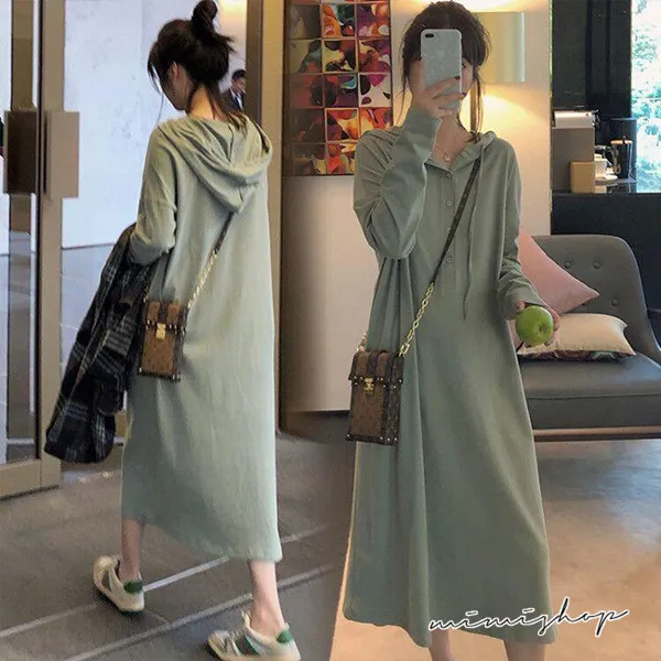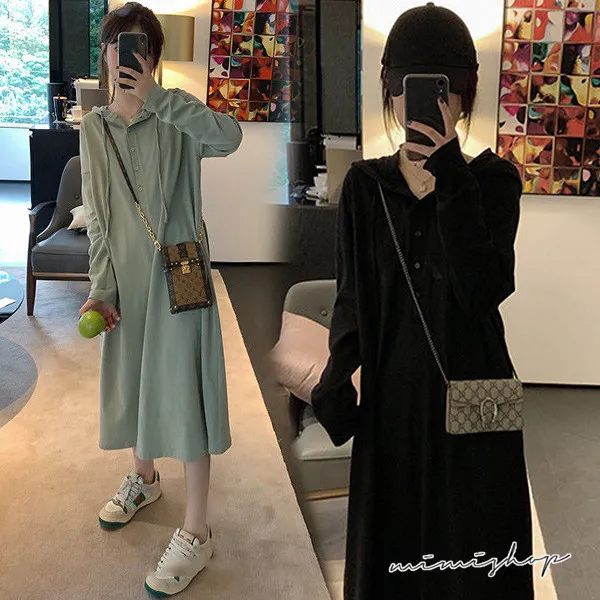 【P521547】單穿就好看 長袖連帽排釦連身裙 孕婦洋裝 開扣哺乳