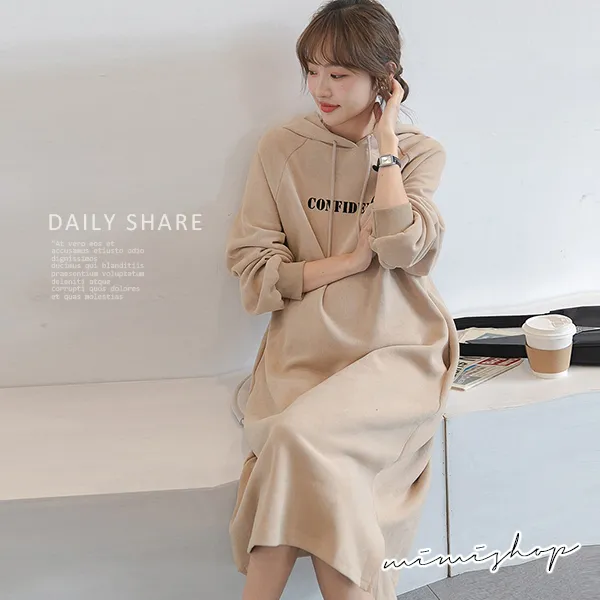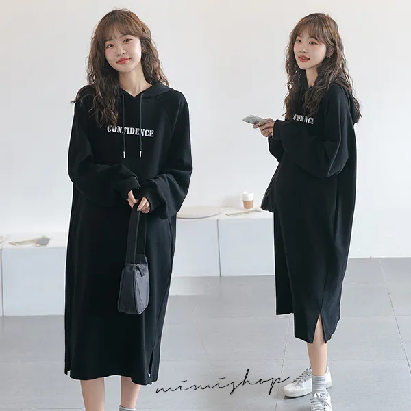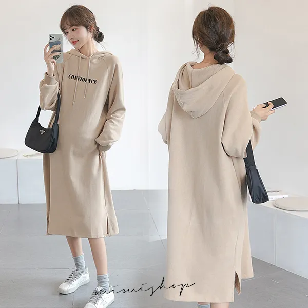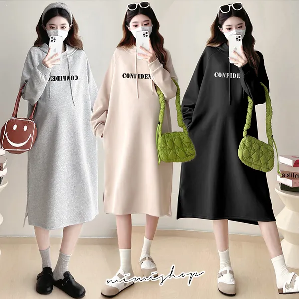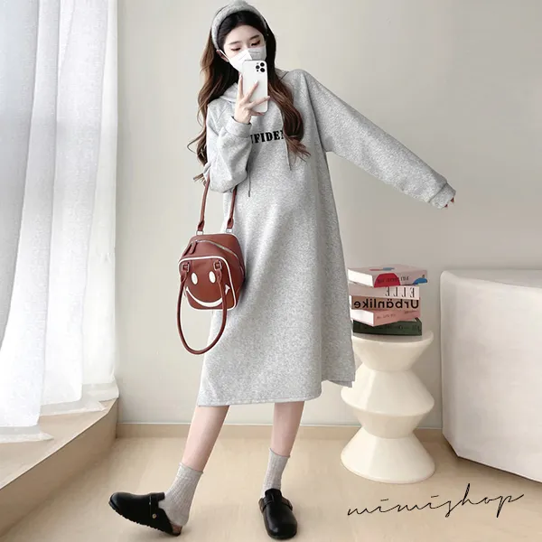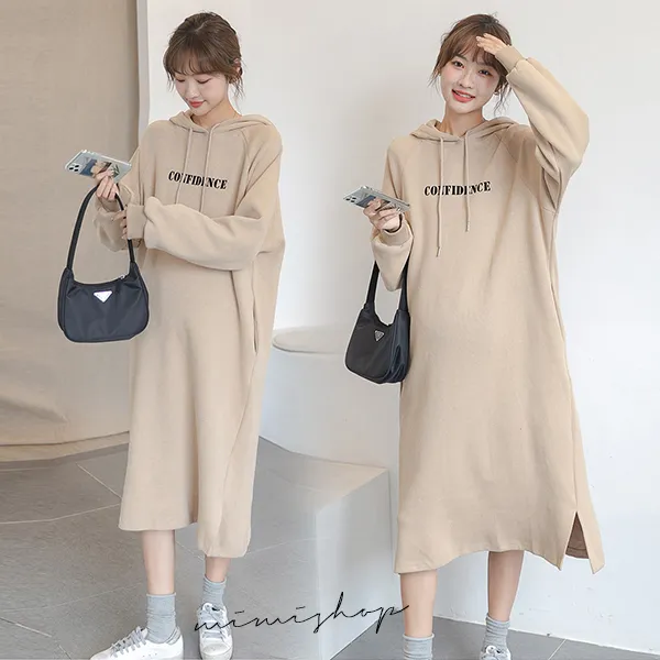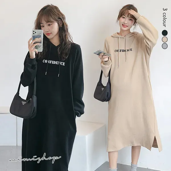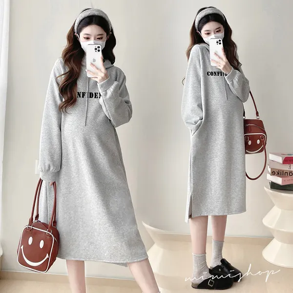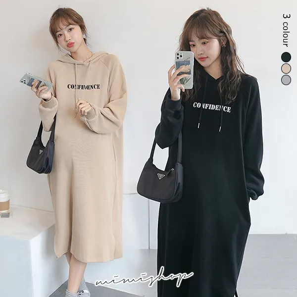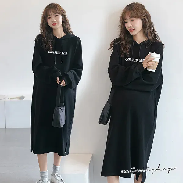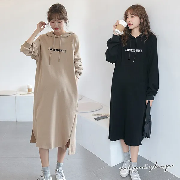 【P521595】顯瘦好質感 連帽字母孕婦裙 孕婦洋裝 長裙