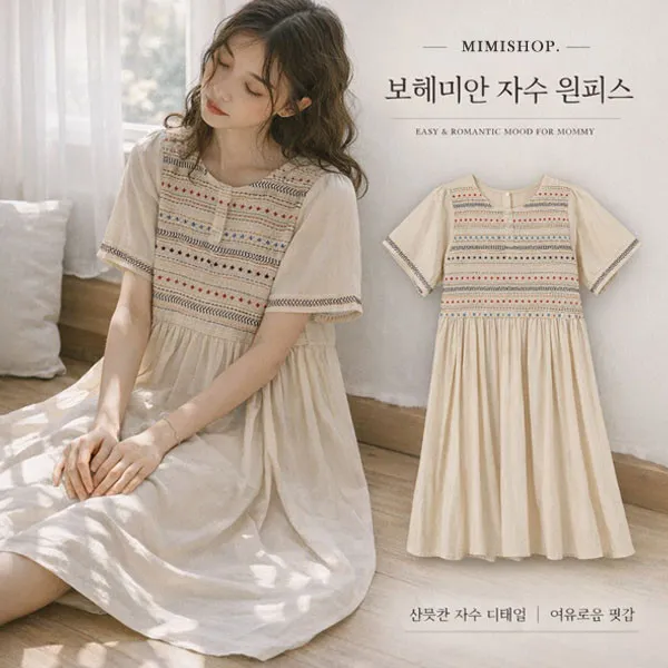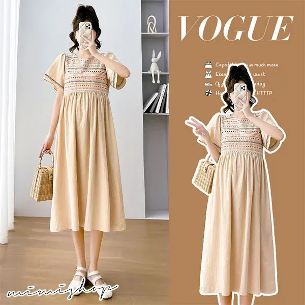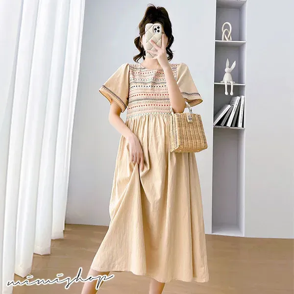 【P521910】輕鬆小旅行 民族風刺繡連身裙 孕婦洋裝 長裙