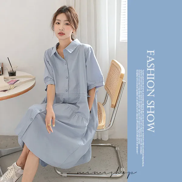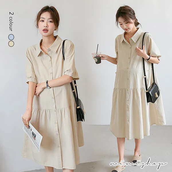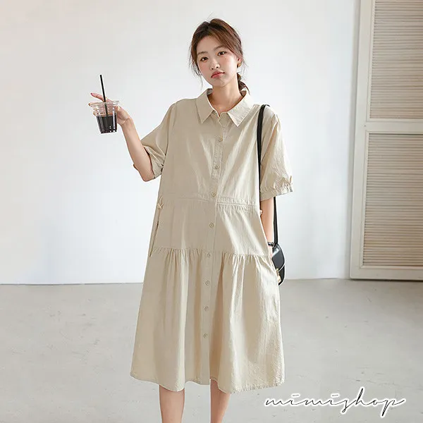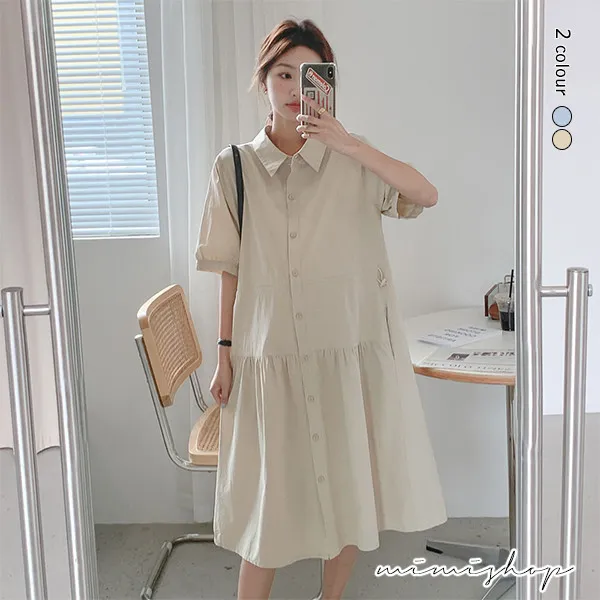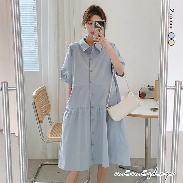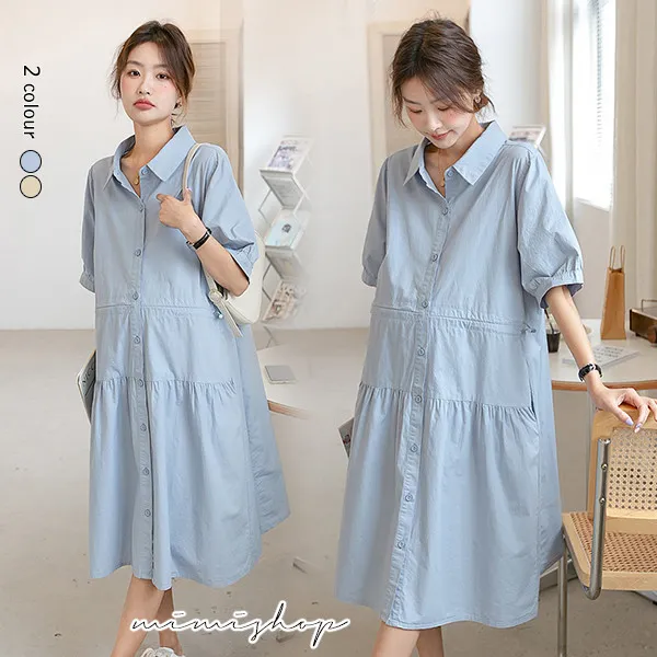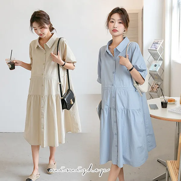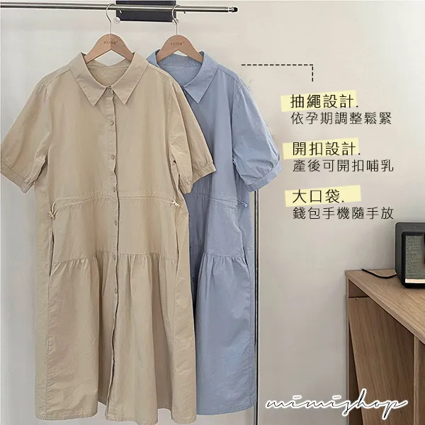 【P521977】美學小清新 雅緻寬版襯衫裙 孕婦洋裝 開扣哺乳裙