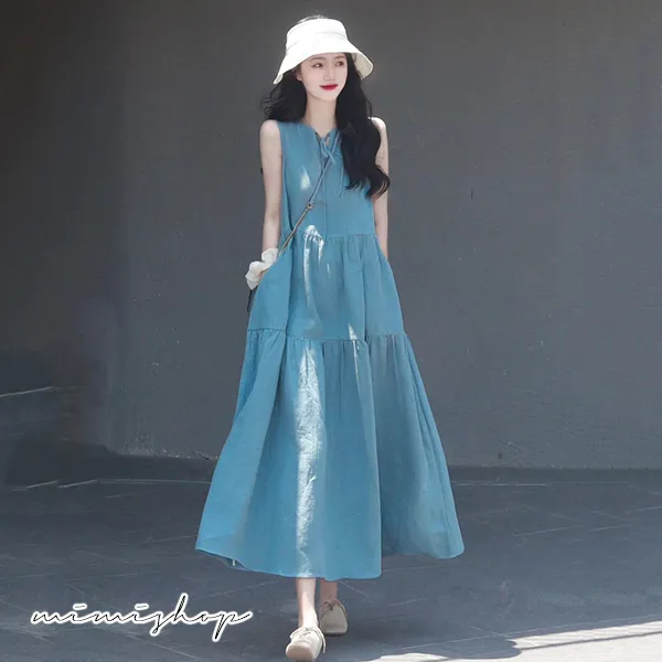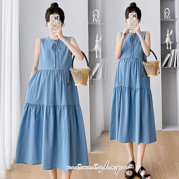 【P521997】京都之戀 無袖寬版連衣裙 孕婦洋裝 長裙