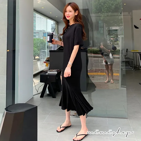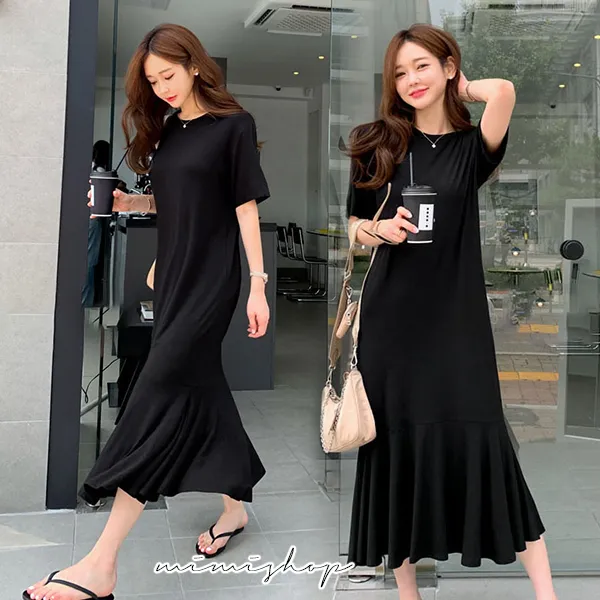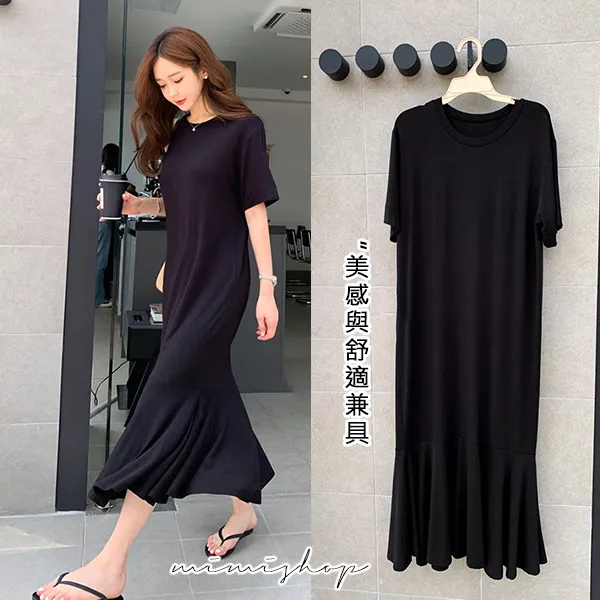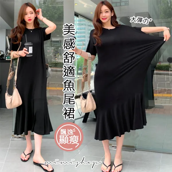 【P521999】涼感顯瘦 莫代爾彈力魚尾連身裙 孕婦洋裝 長裙