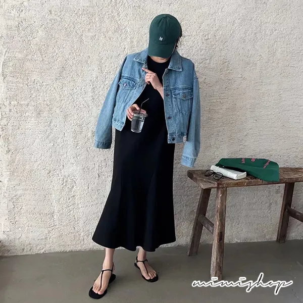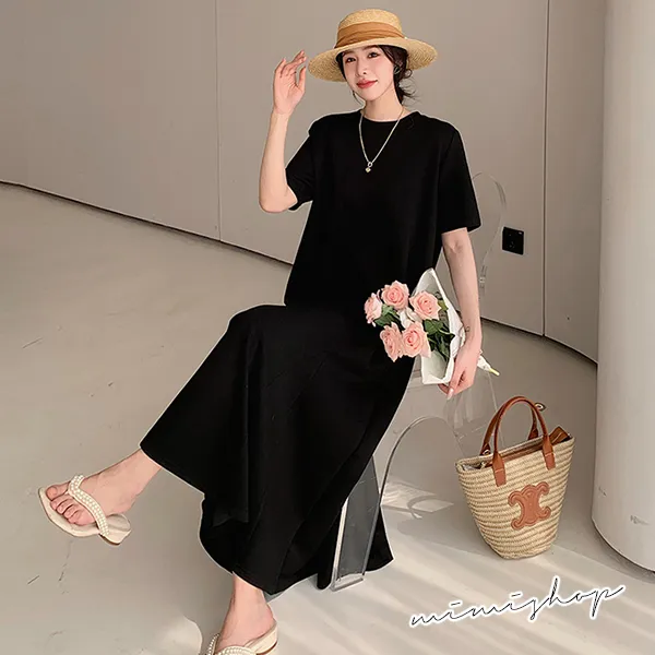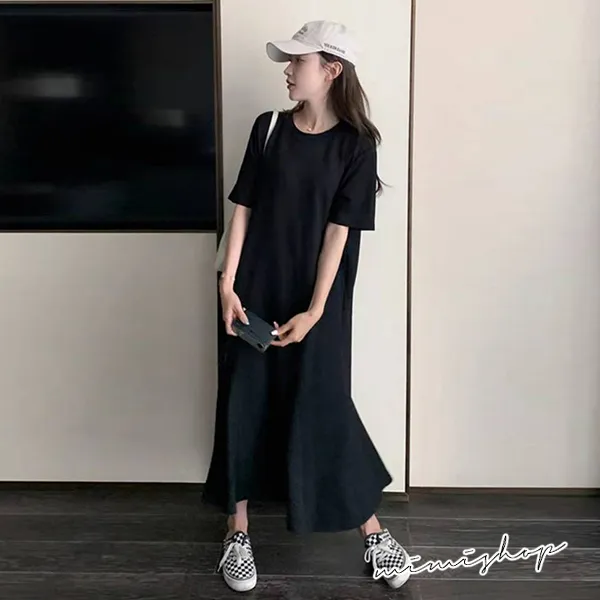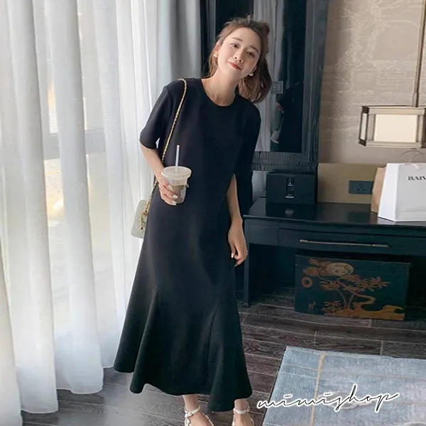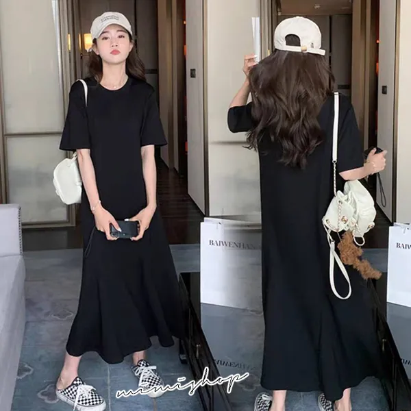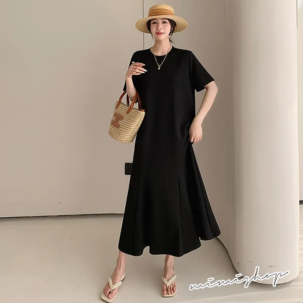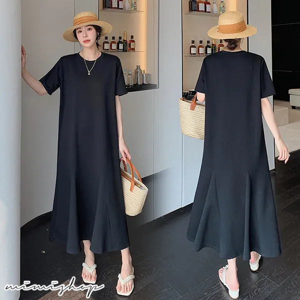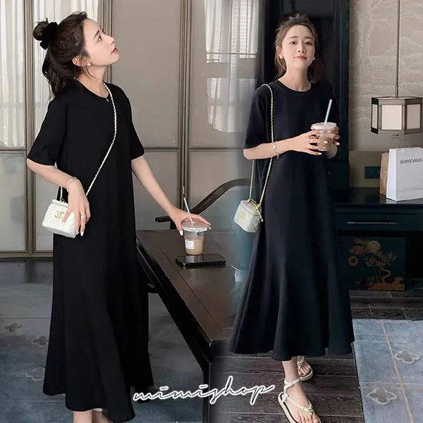【P522009】韓系剪裁 顯瘦純色寬襬連身裙 孕婦洋裝 長裙