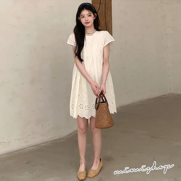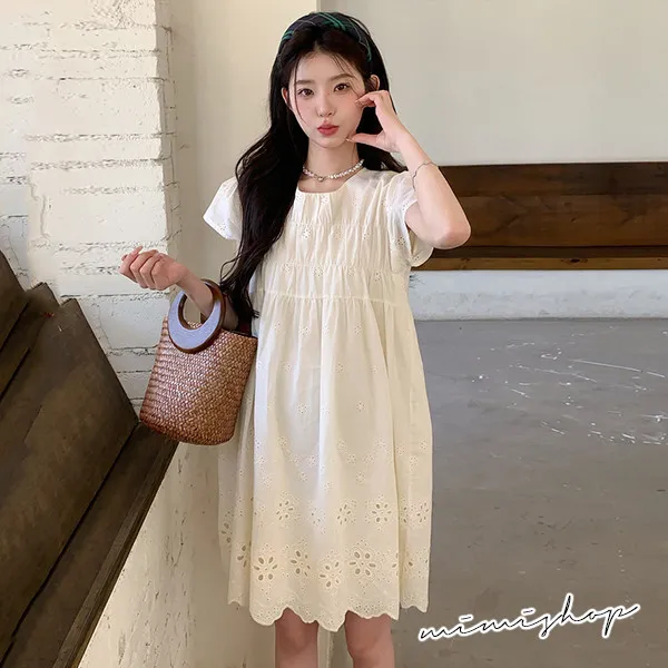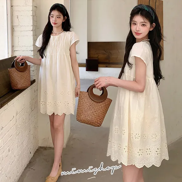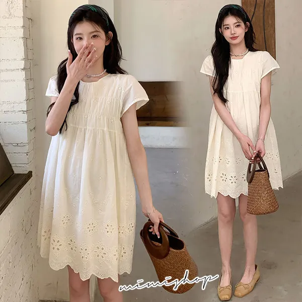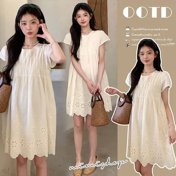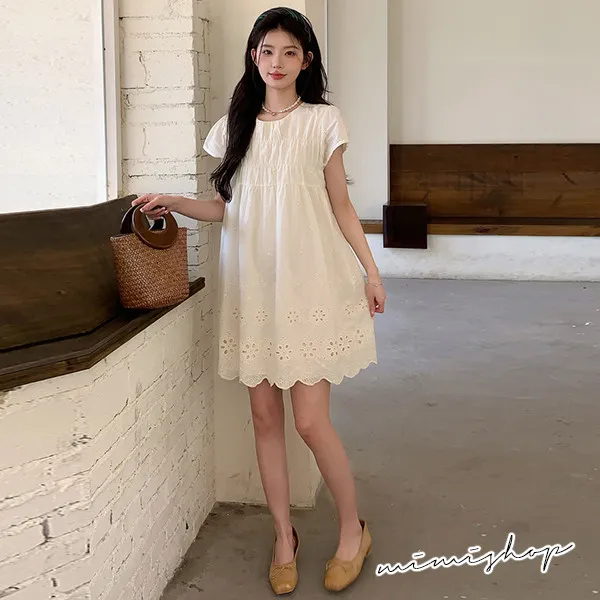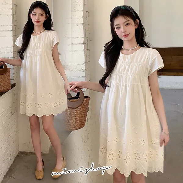 【P522137】清新甜美 質感鏤空花邊連身裙 孕婦洋裝 有內裡