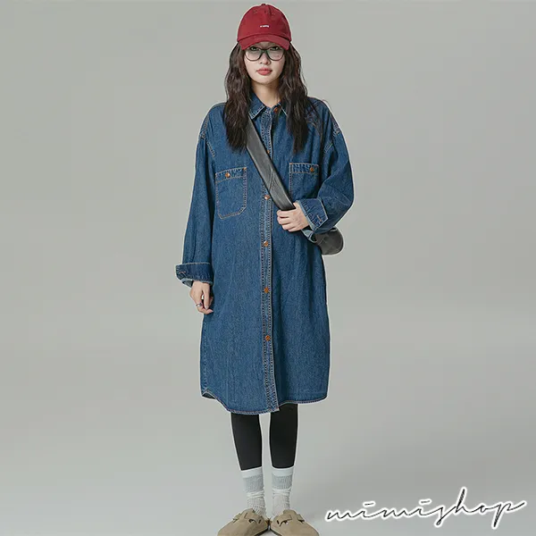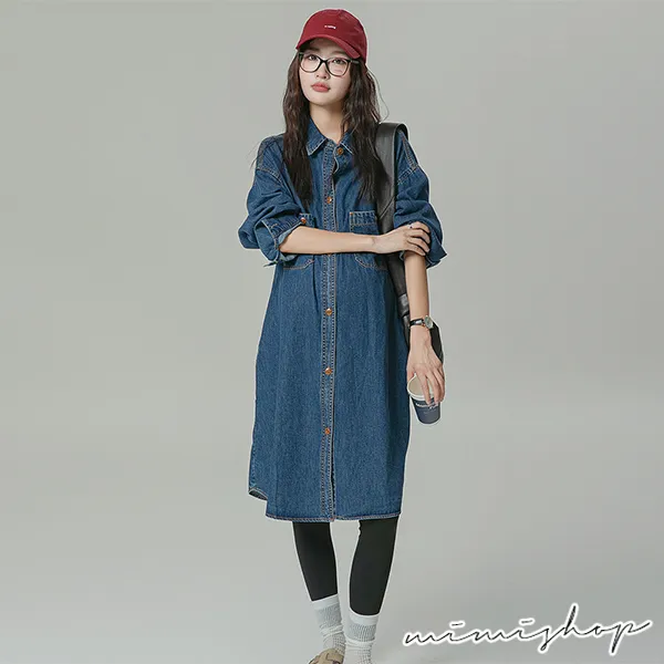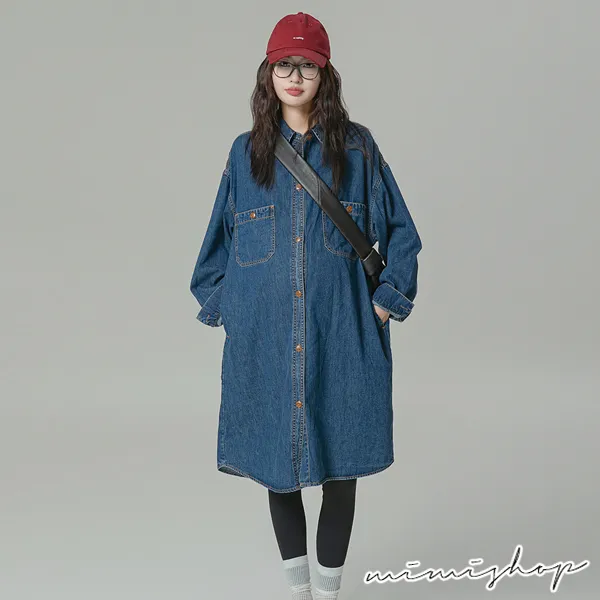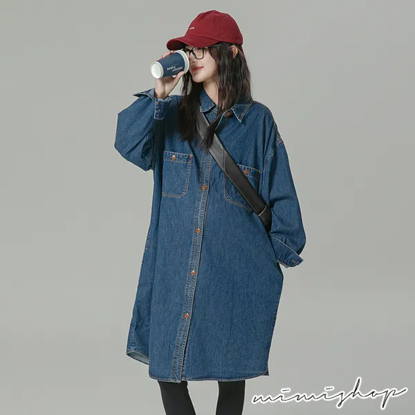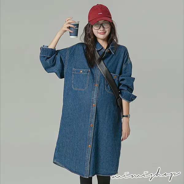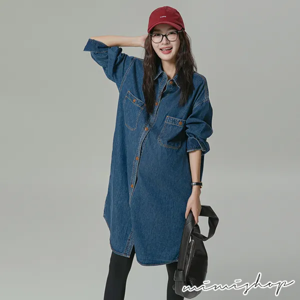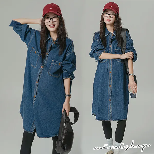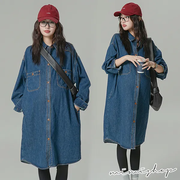 【P522156】不敗單寧 質感寬版襯衫裙 牛仔裙 孕婦裙 開口哺乳