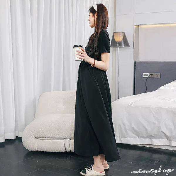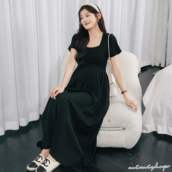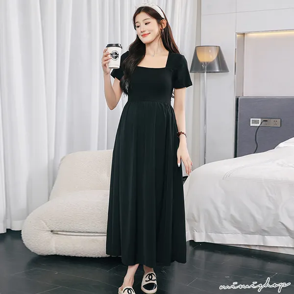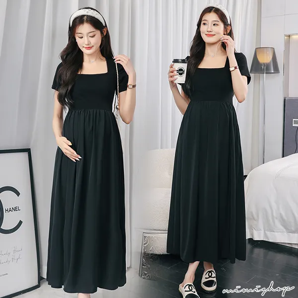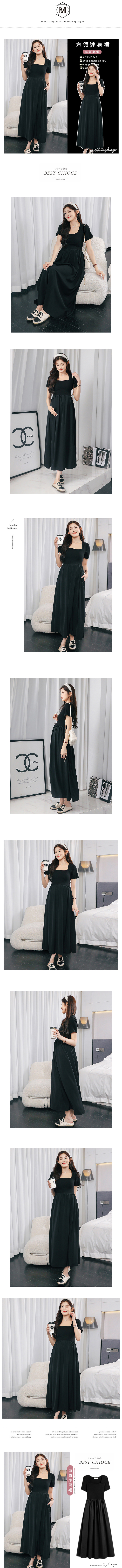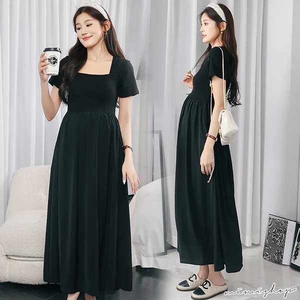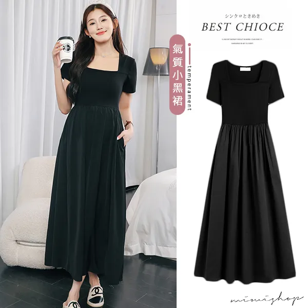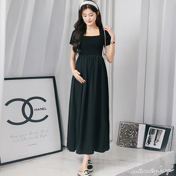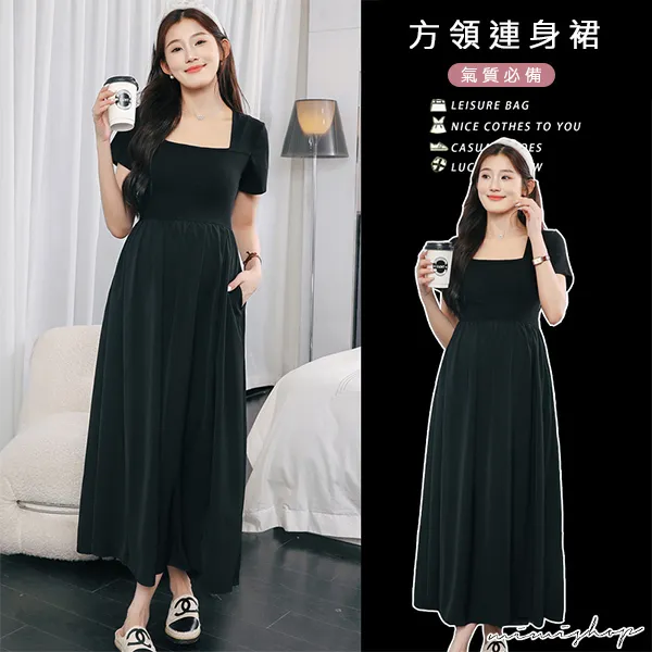 【P522205】Chic小黑裙 氣質方領高腰連身裙 孕婦洋裝