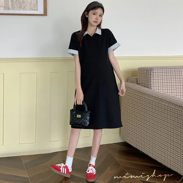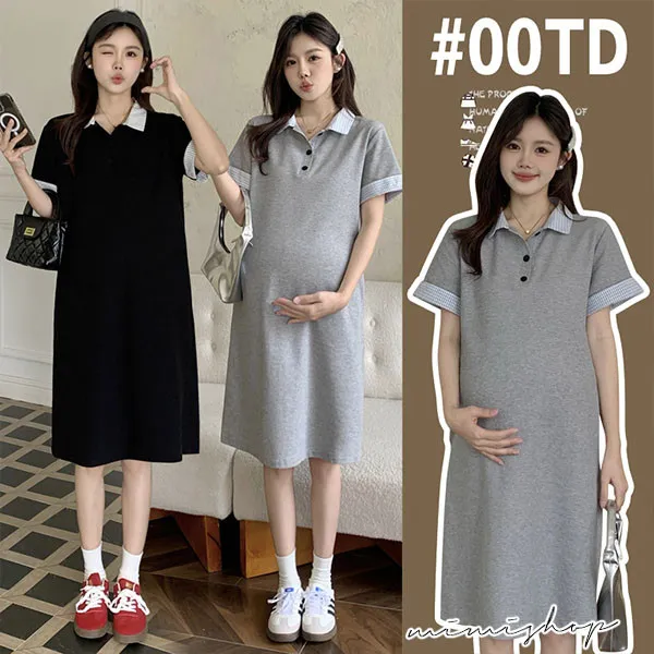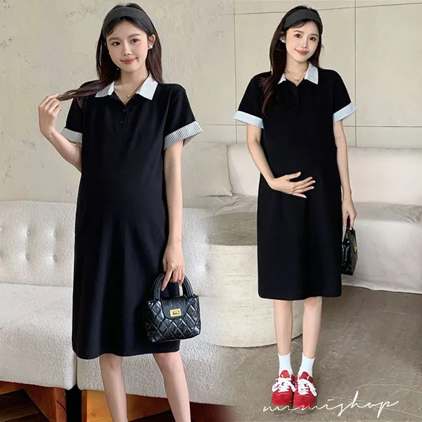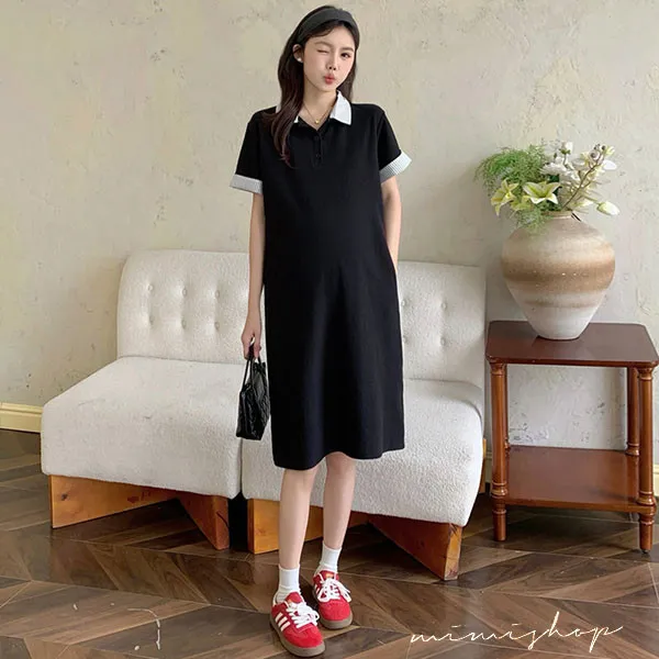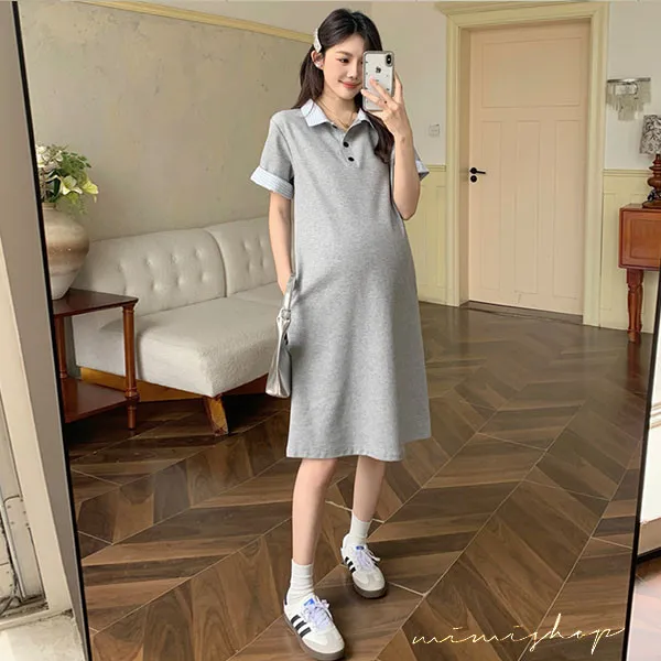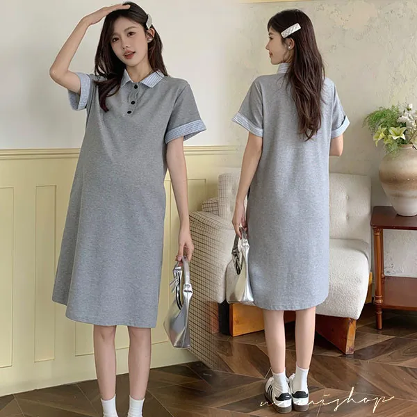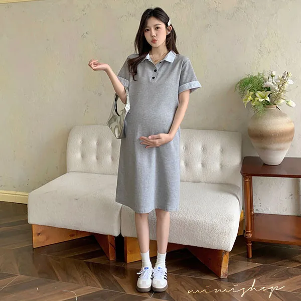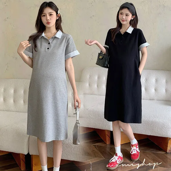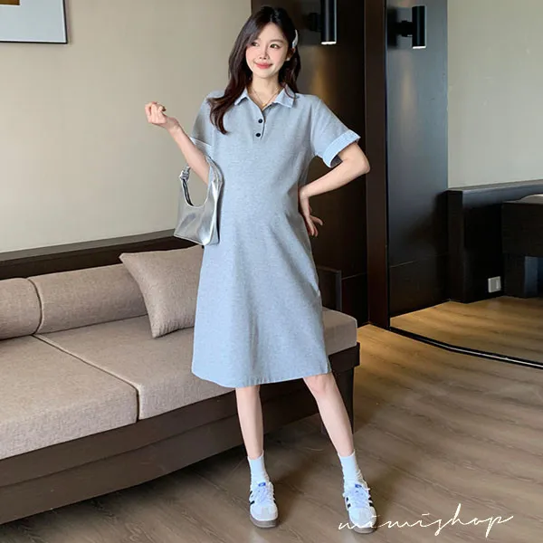 【P522254】顯瘦版型 棉質網眼Polo連身裙 孕婦裙 不限孕期