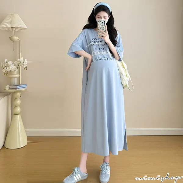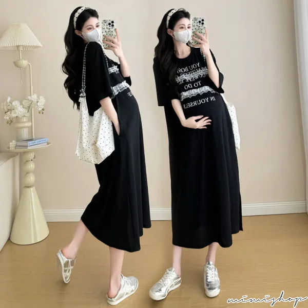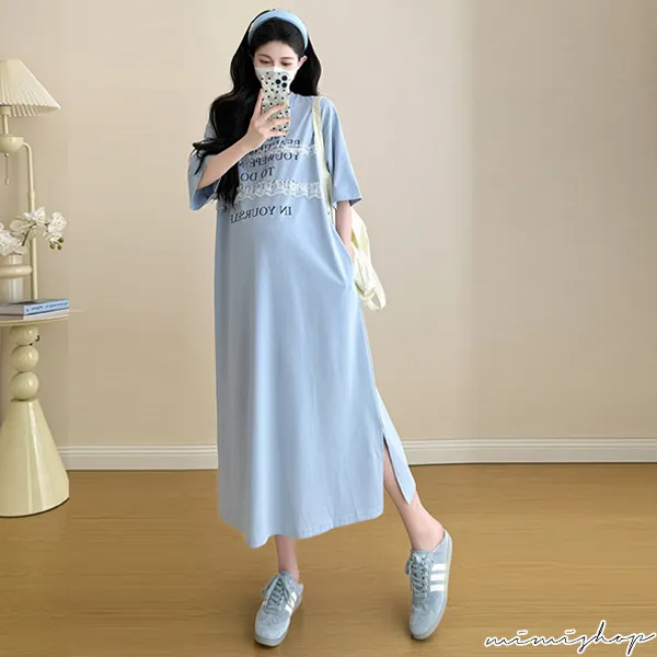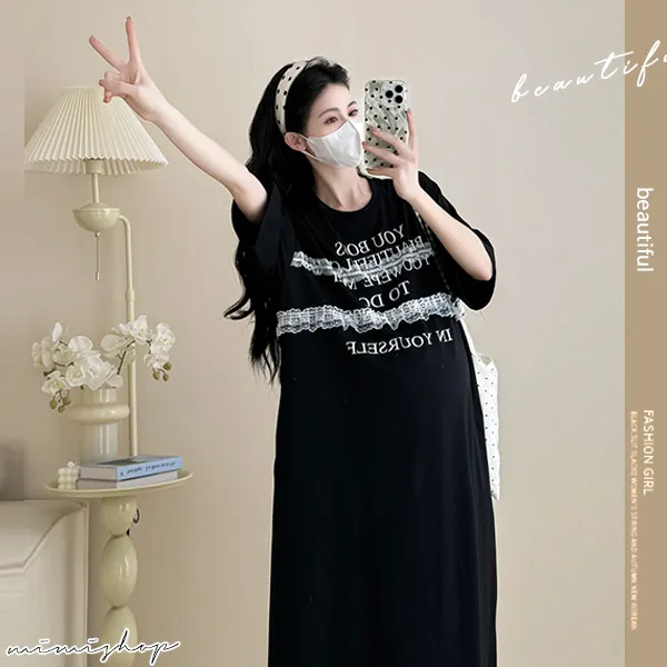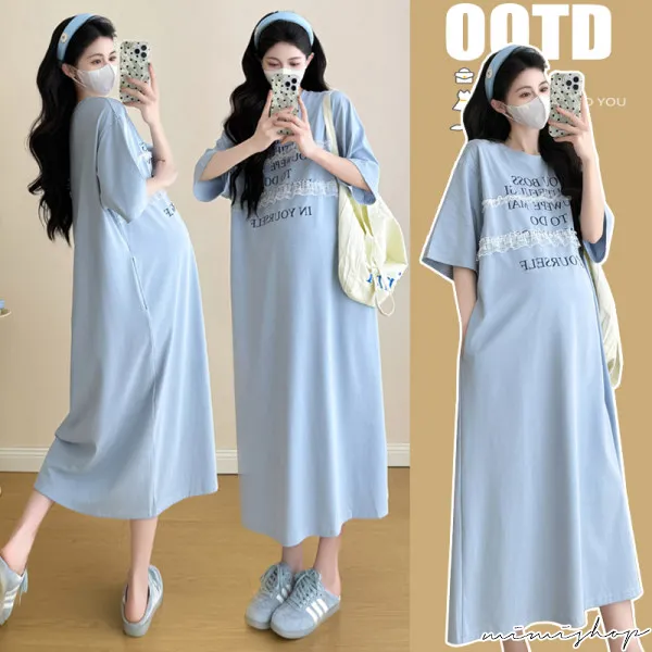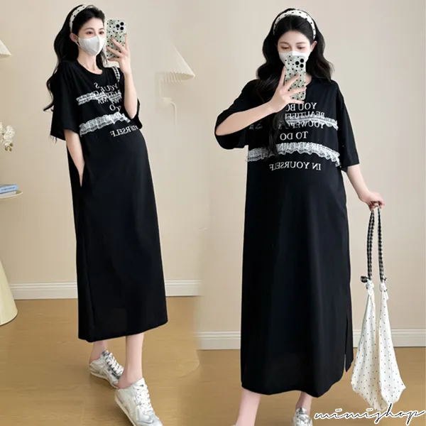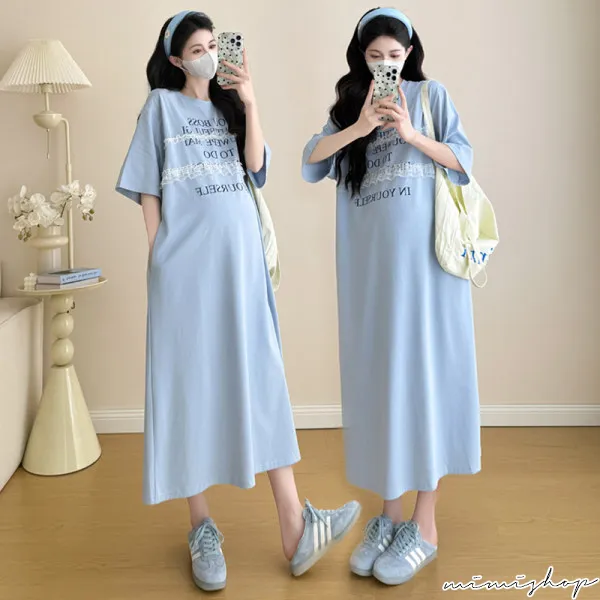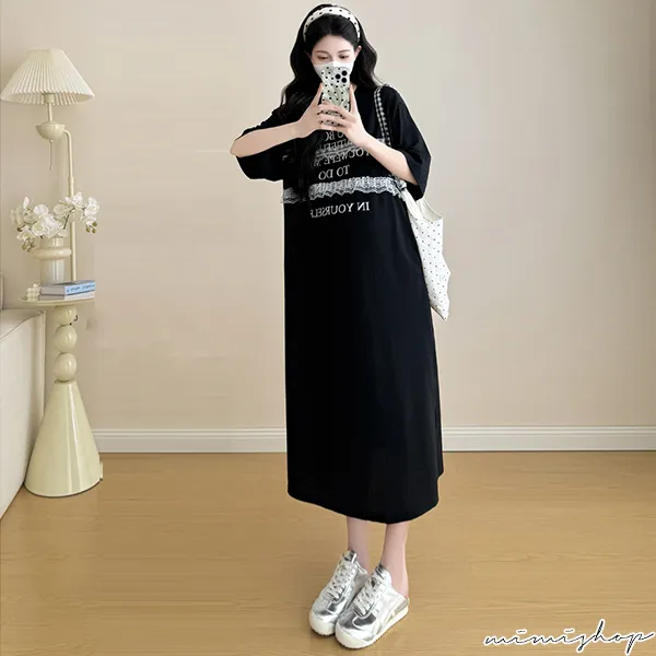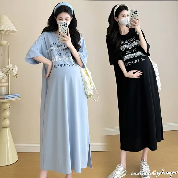 【P522256】輕鬆自在 字母蕾絲寬鬆洋裝 連身裙 孕婦洋裝
