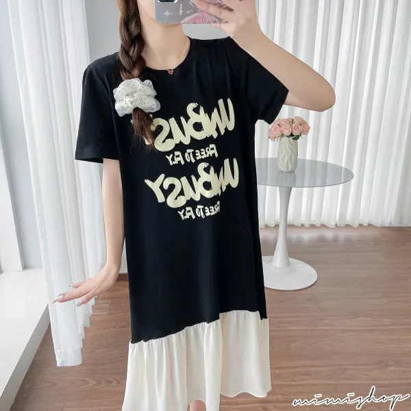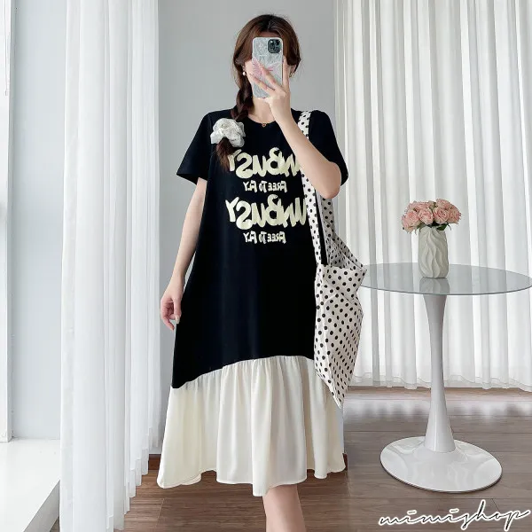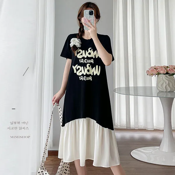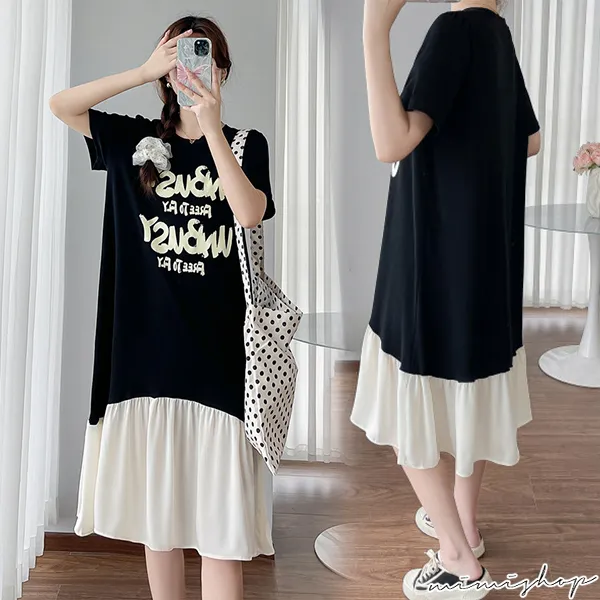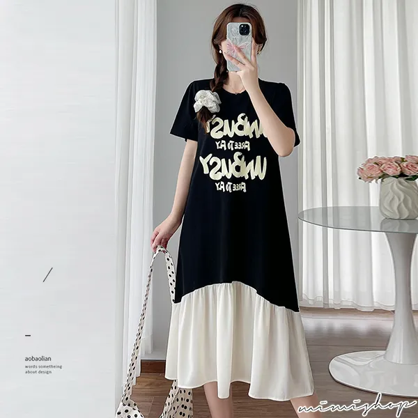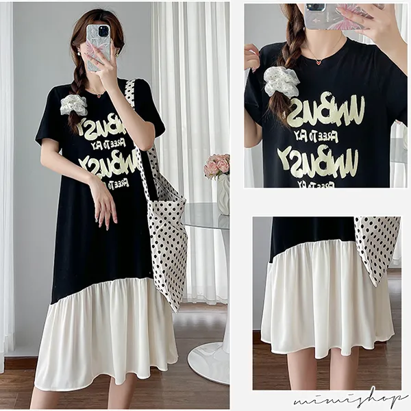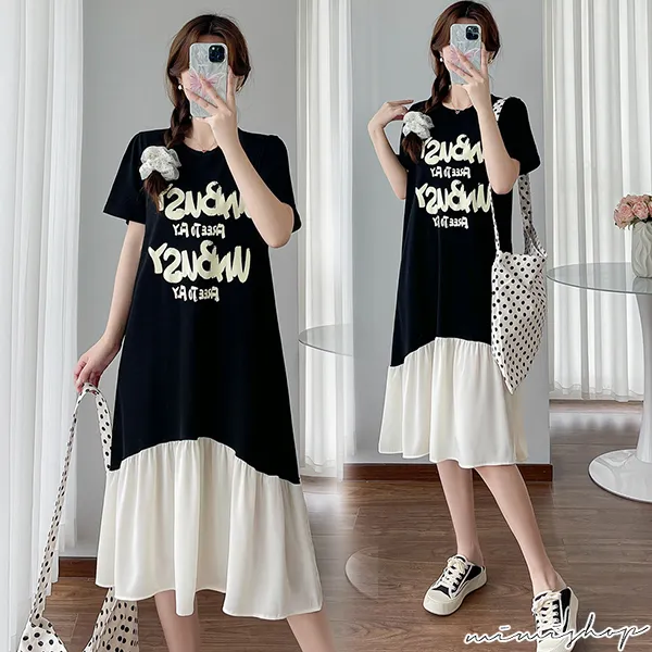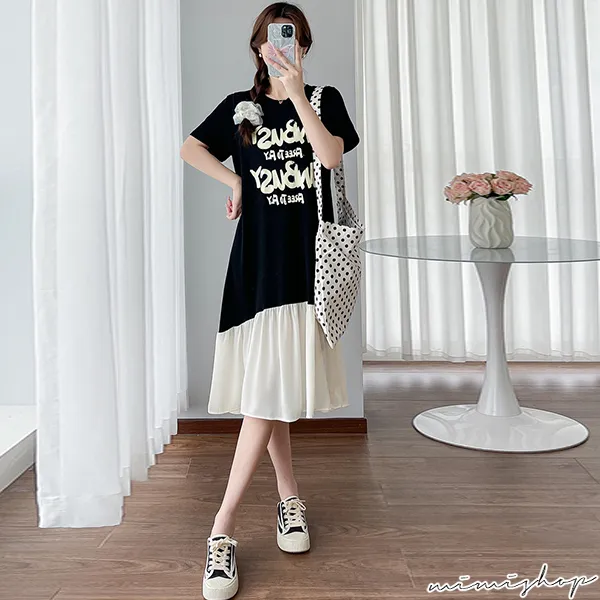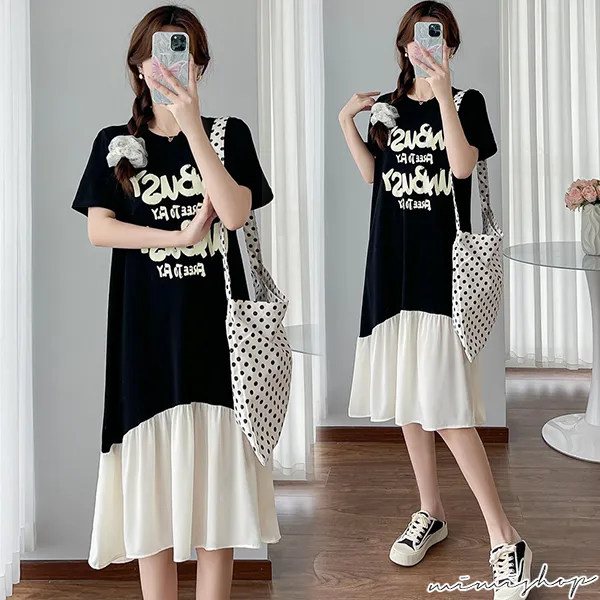 【P522257】溫婉氣息 顯瘦字母拼接雪紡連身裙 孕婦洋裝