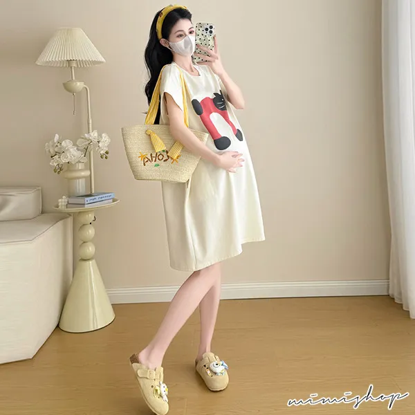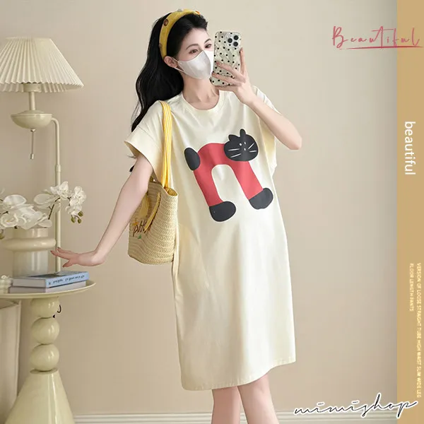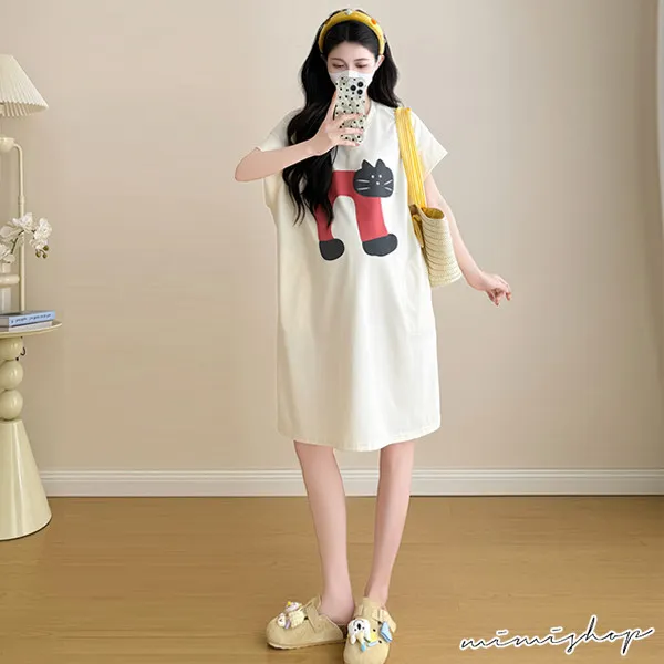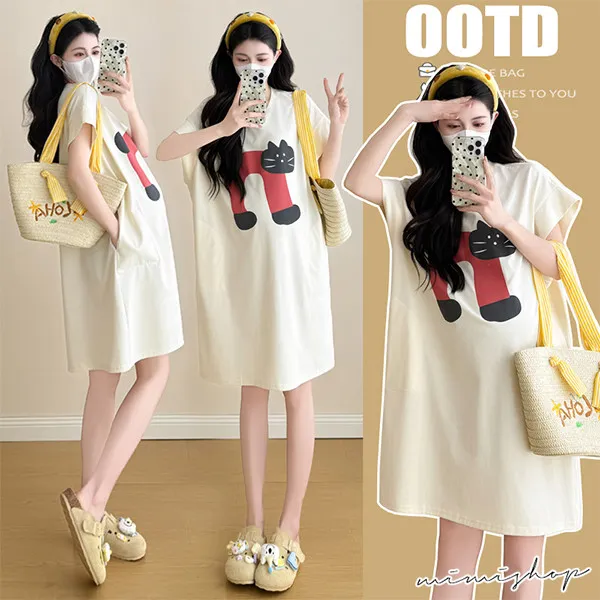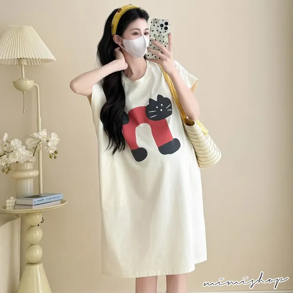 【P522276】美好相遇 長腳貓咪寬版連身裙 短洋 孕婦裙