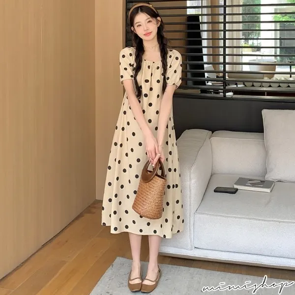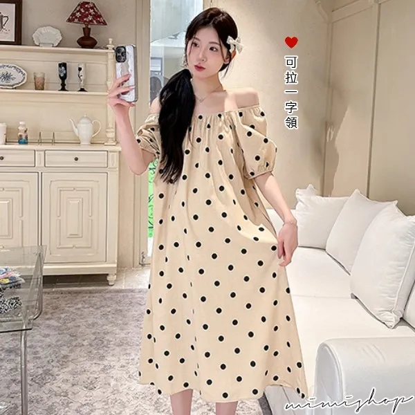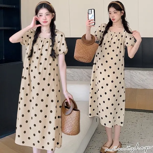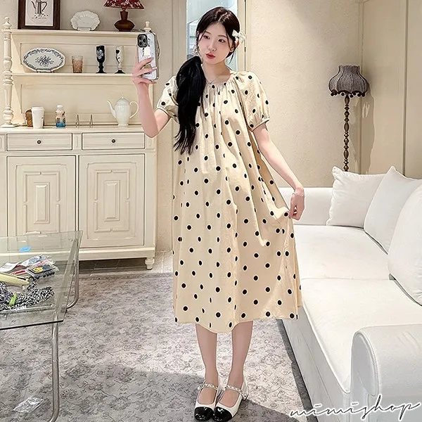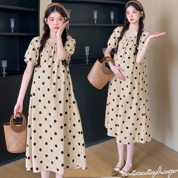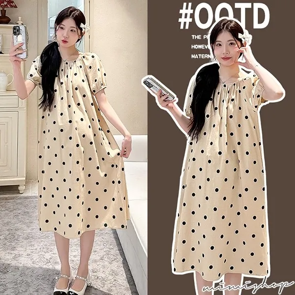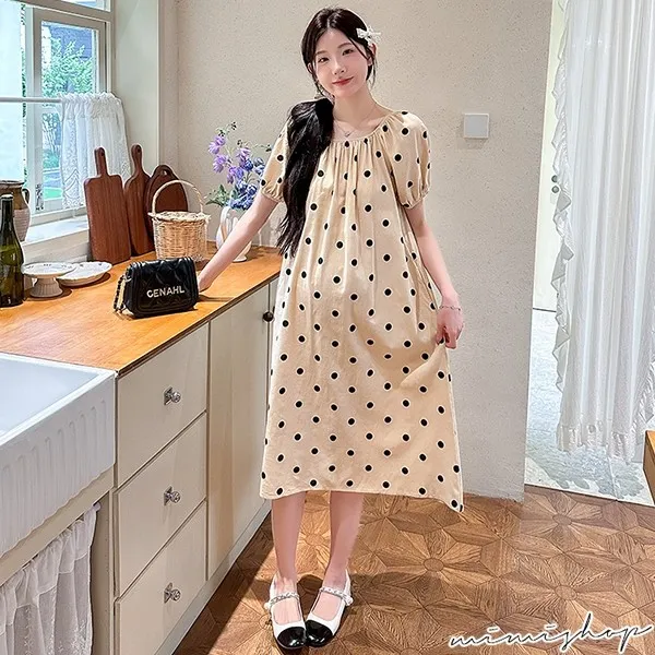 【P522292】輕甜復古 波點寬襬連身裙 孕婦洋裝