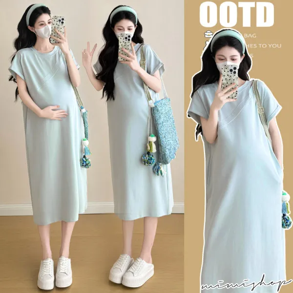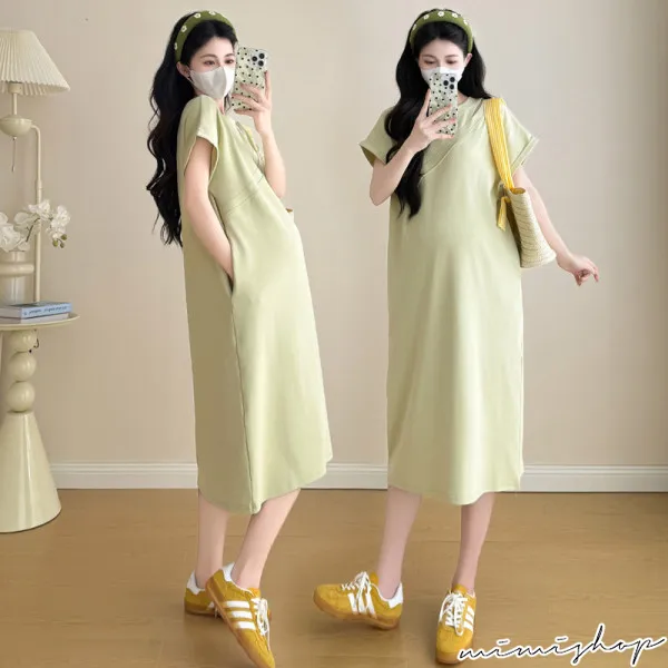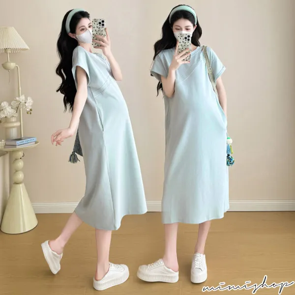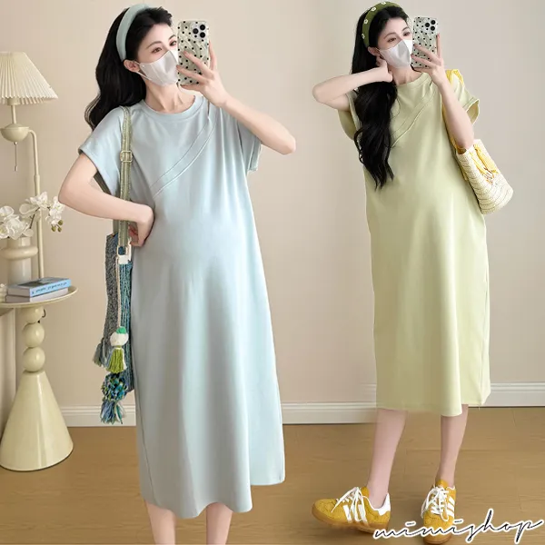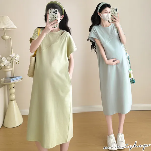 【P522294】領口設計感 涼感寬鬆連身裙 孕婦洋裝