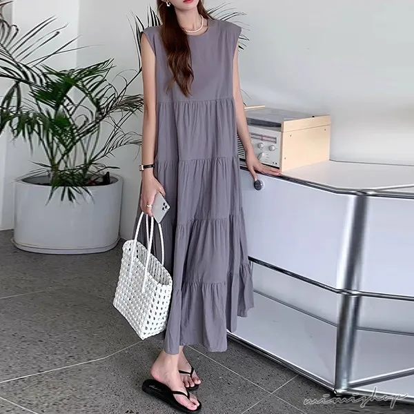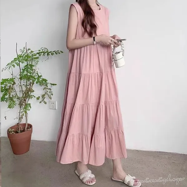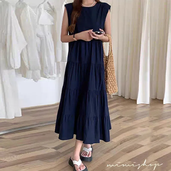 【P522307】輕盈自在 簡約無袖寬鬆連身裙 孕婦洋裝 長裙