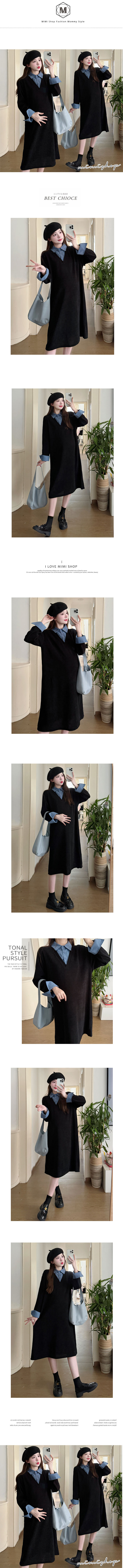 【P522325】氣質襯衫領 顯瘦假兩件燈芯絨連身裙 孕婦洋裝