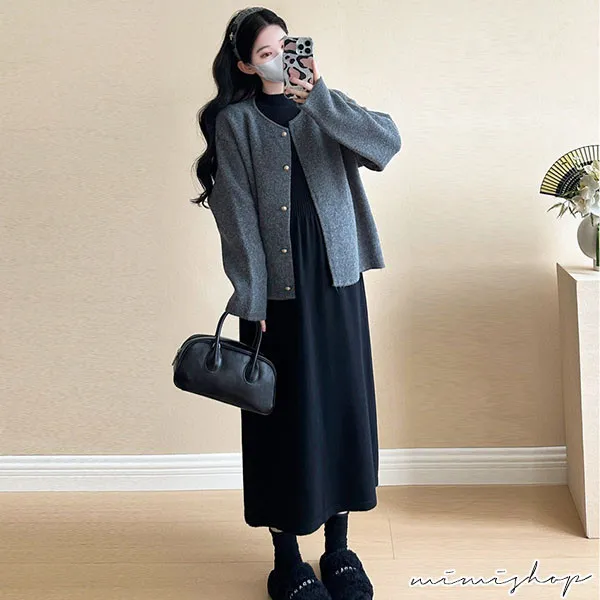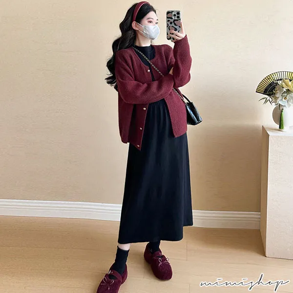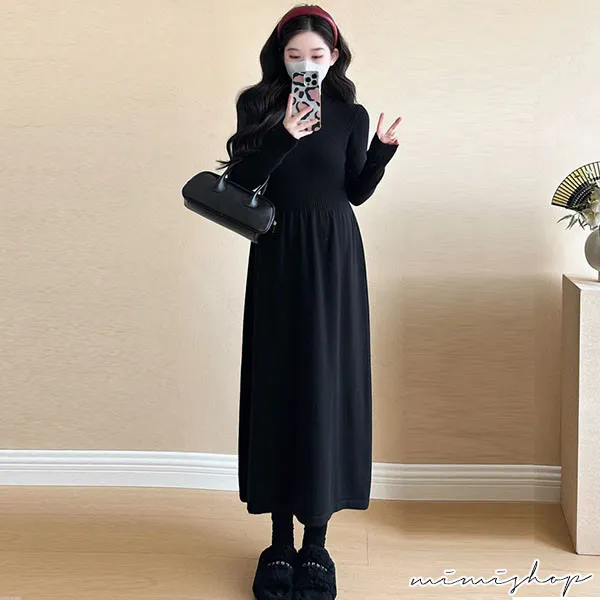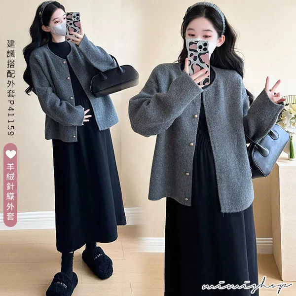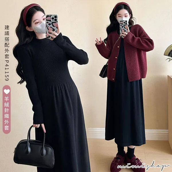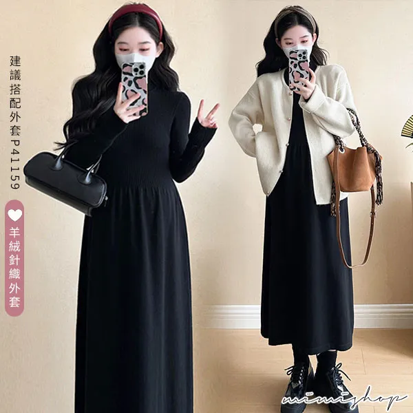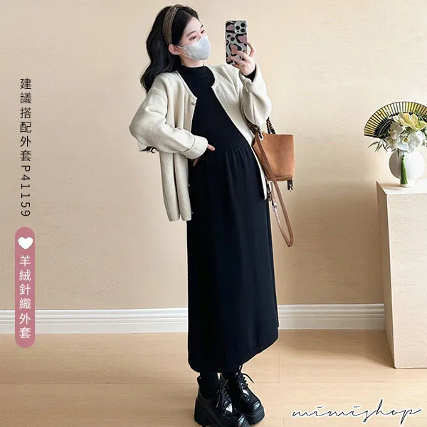 【P522341】溫暖好搭 簡約立領彈力針織裙 孕婦洋裝 內搭裙