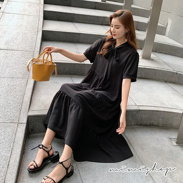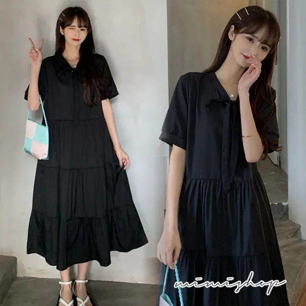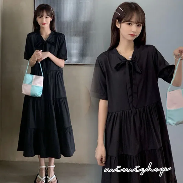 【P522343】顯瘦甜美 寬鬆蝴蝶結連身裙 孕婦洋裝