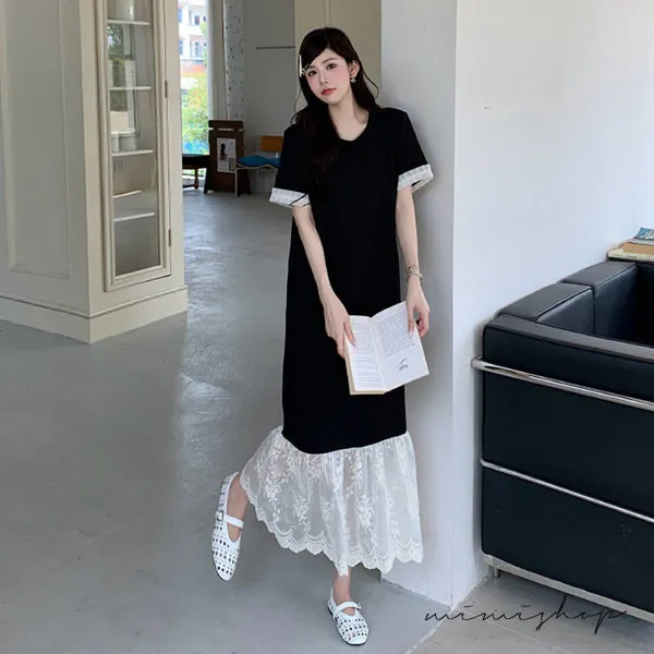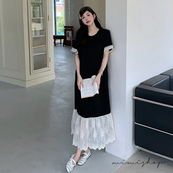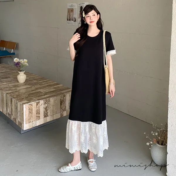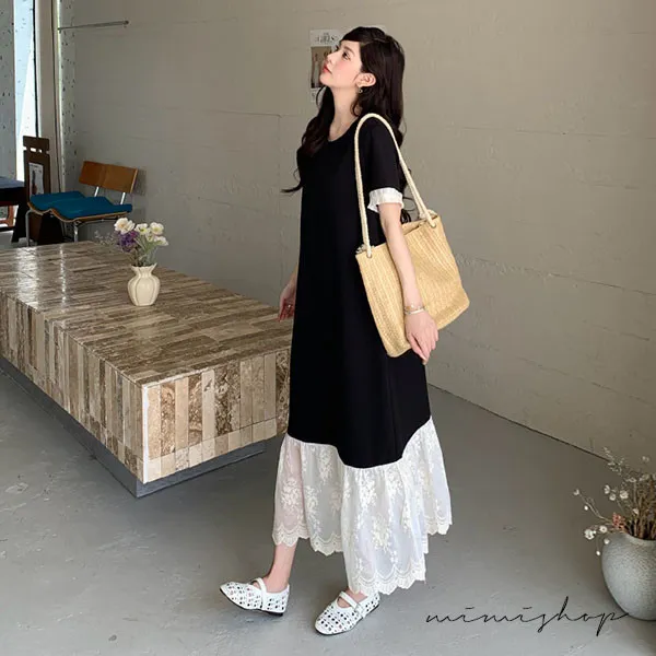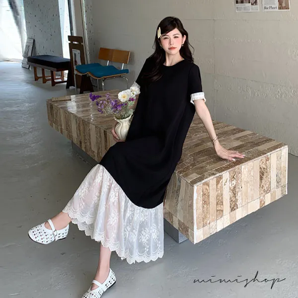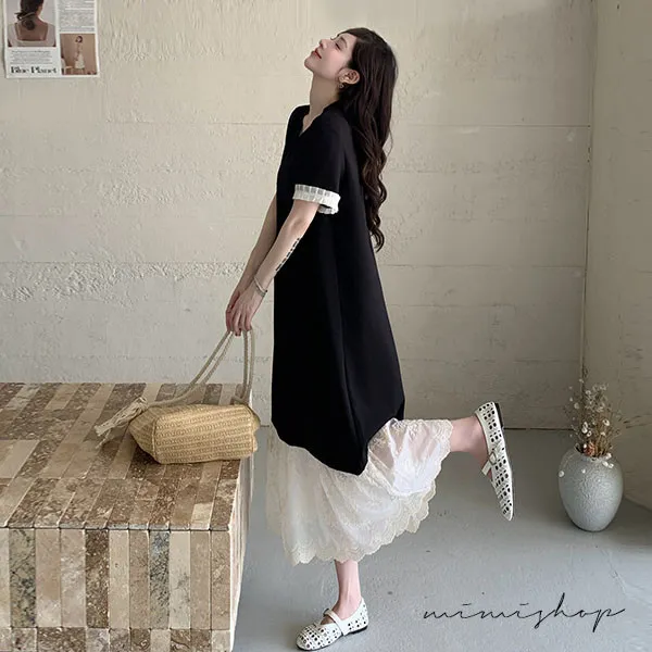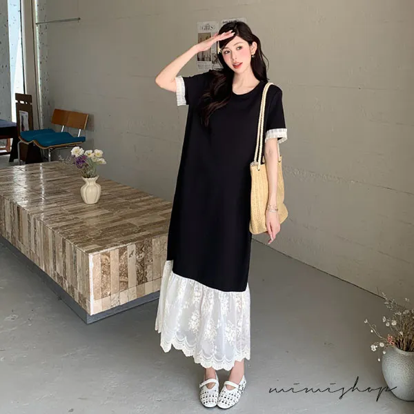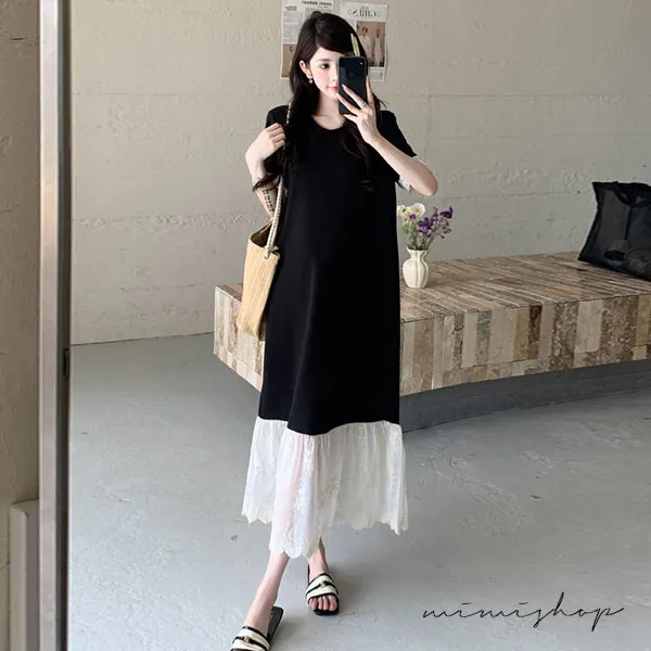 【P522351】巴黎午後 法式慵懶雕花拼接長洋裝 孕婦裙 不限孕期