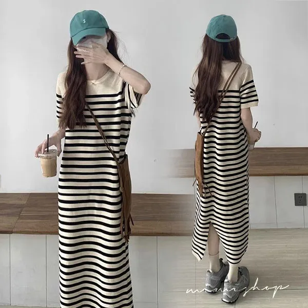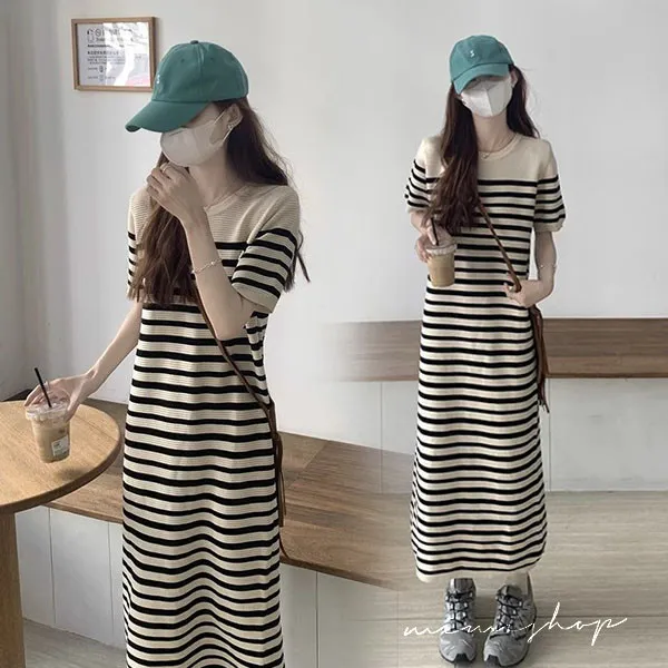 【P522358】懶人神裙 法式坑條針織裙 孕婦裙 顯瘦長裙