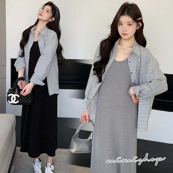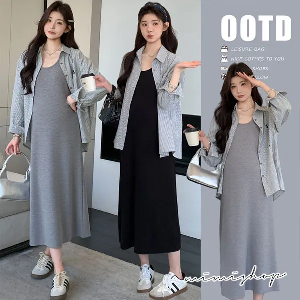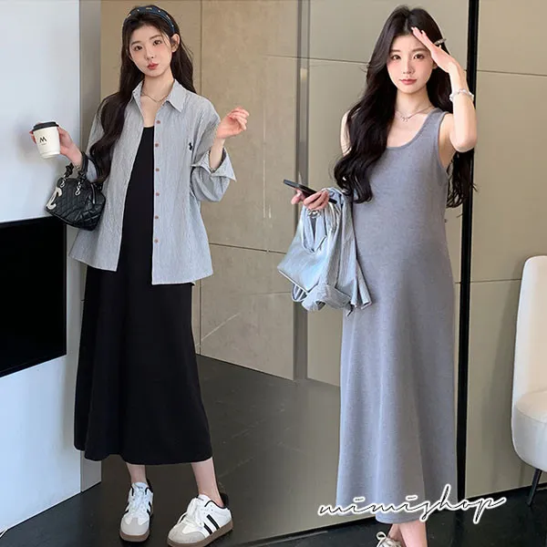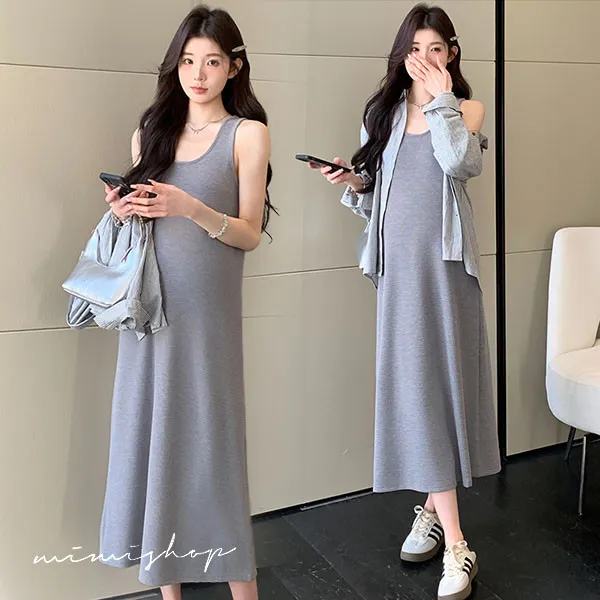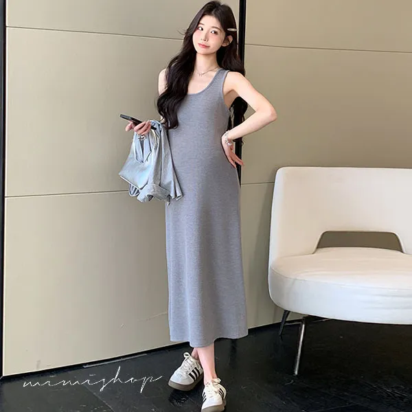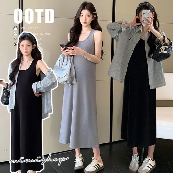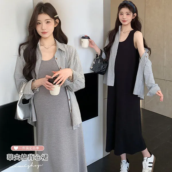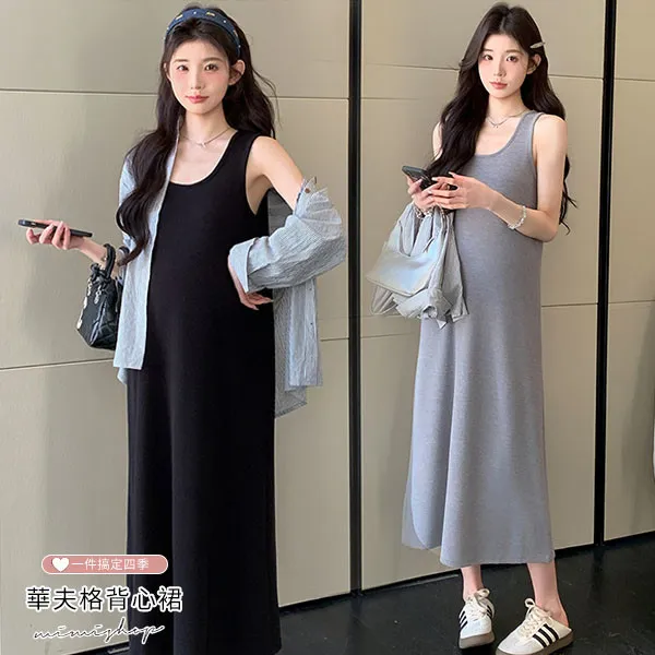 【P522371】日光漫步 四季必備 寬襬純色背心裙 孕婦裙 長裙