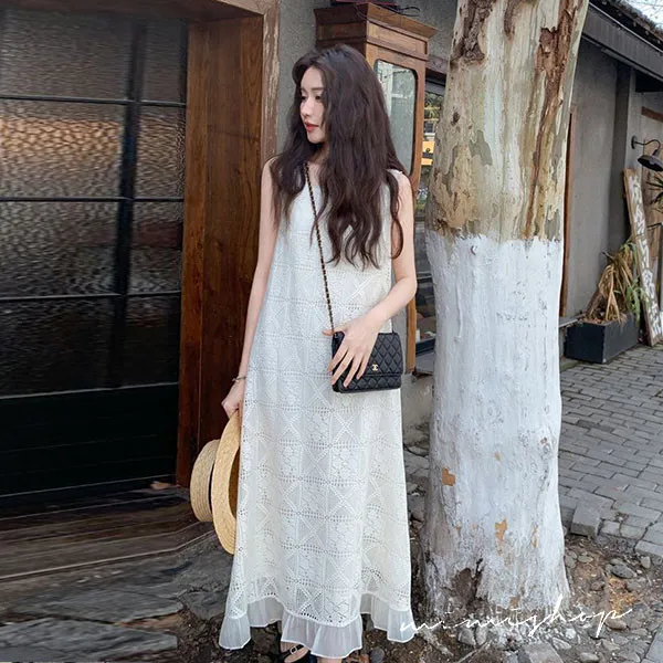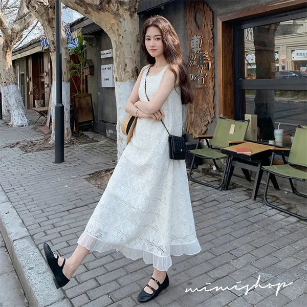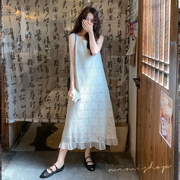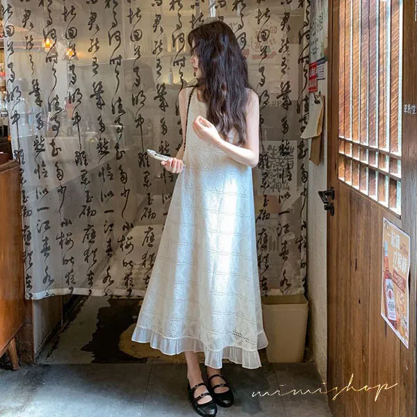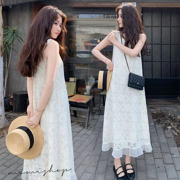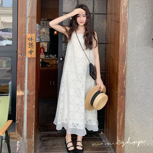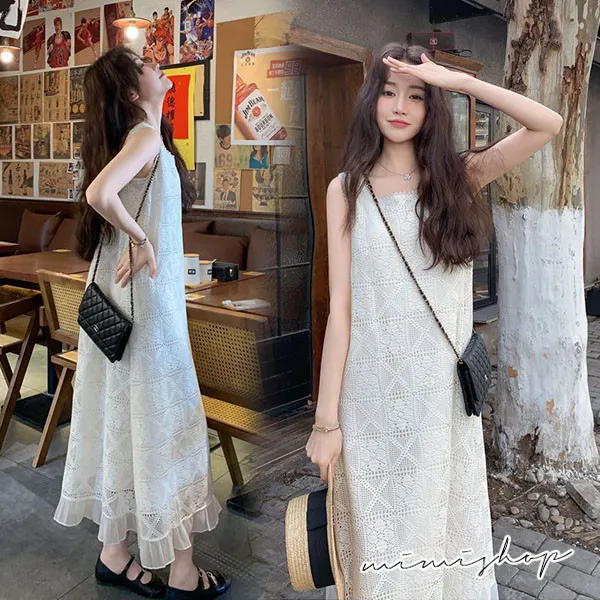 【P522372】微風森系 浪漫蕾絲層次感寬鬆長裙 孕婦洋裝