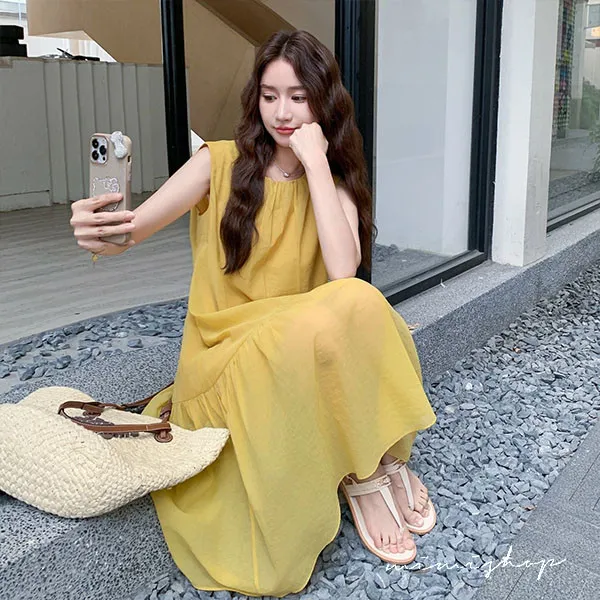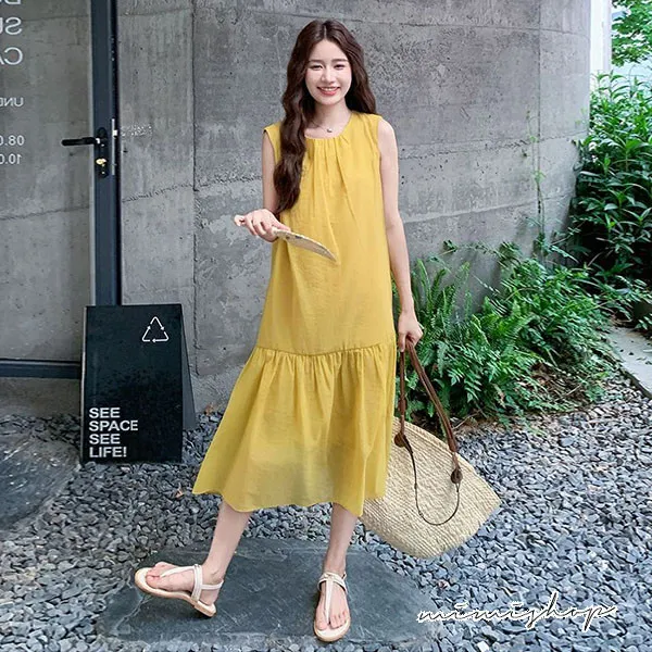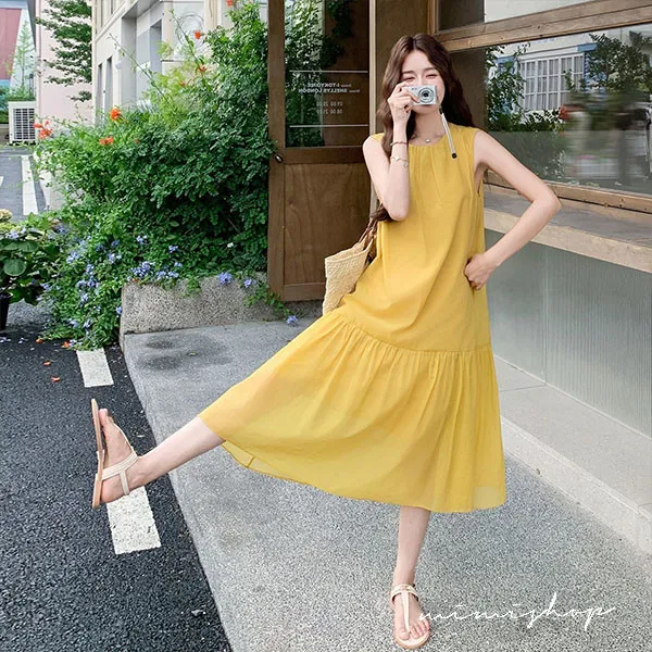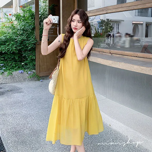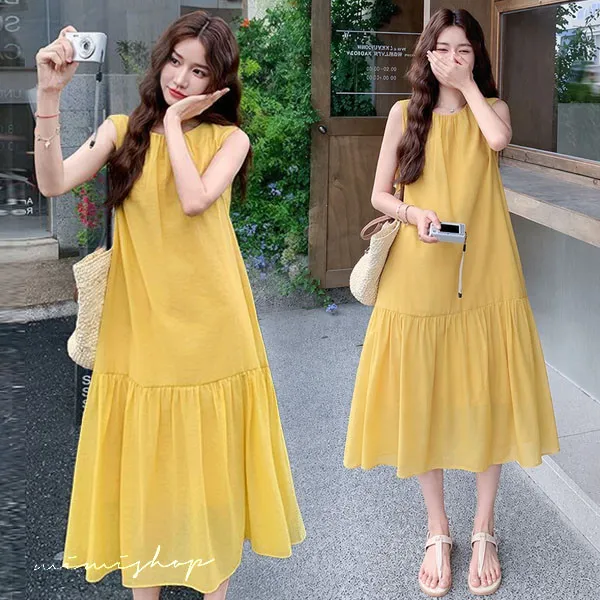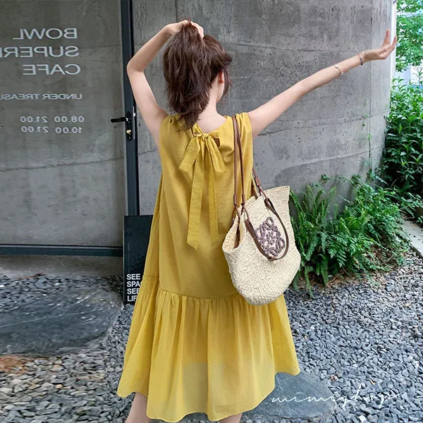 【P522378】南法旅行 輕盈層次感大擺蝴蝶結長裙 孕婦洋裝