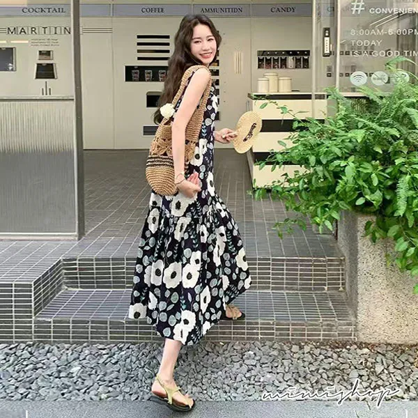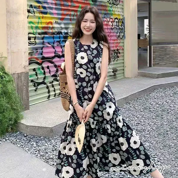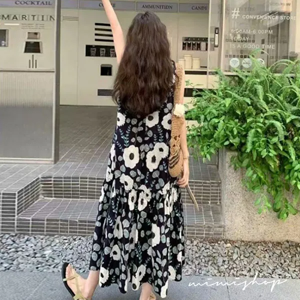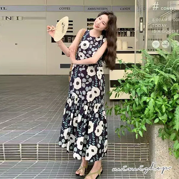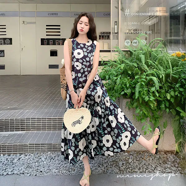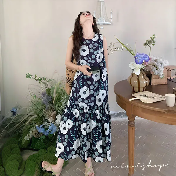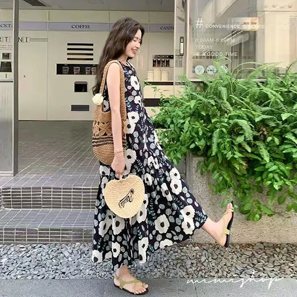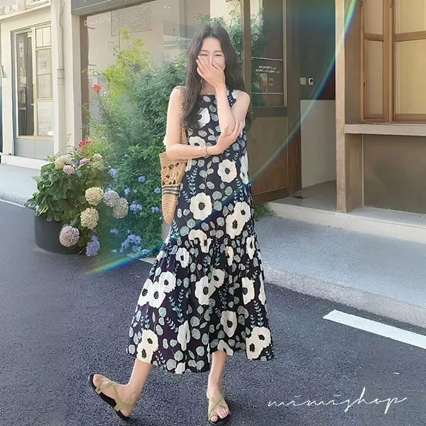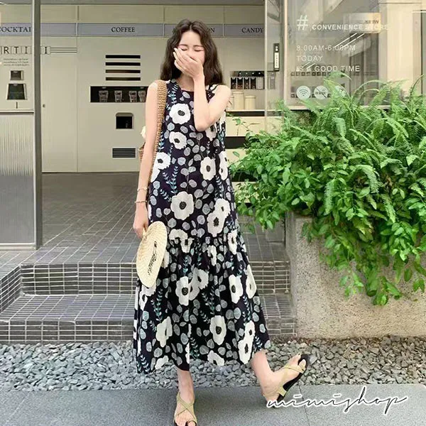 【P522380】祕密花園 法式復古花卉背心裙 度假長裙 孕婦洋裝