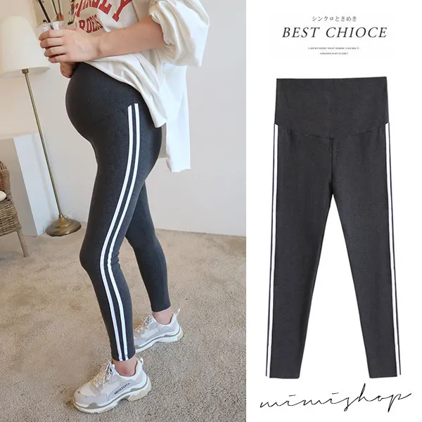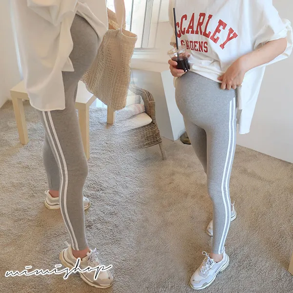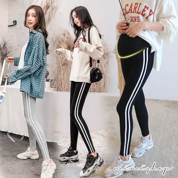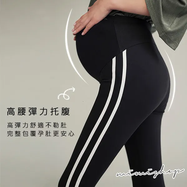 【P61311】內搭褲 專櫃好品質 側邊條紋休閒孕婦褲 四季實穿推薦