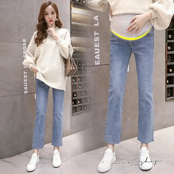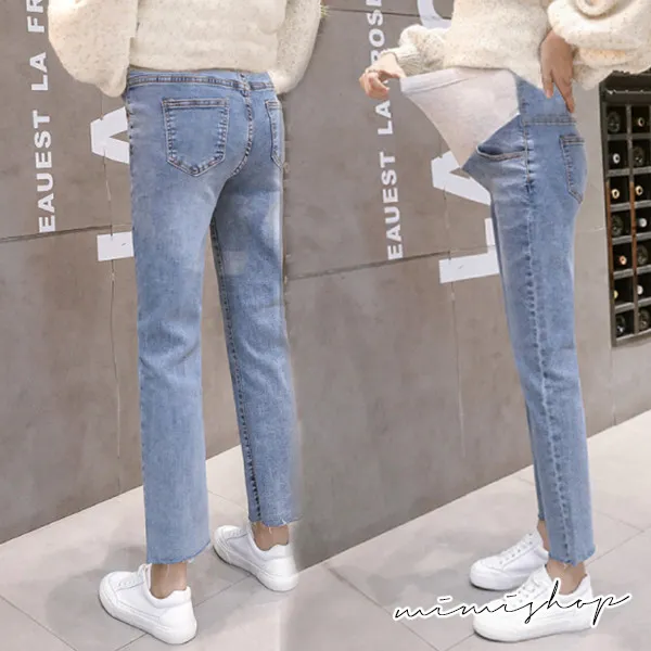 【P61731】美型托腹設計 刷色水洗彈力牛仔褲 直筒褲 孕婦褲