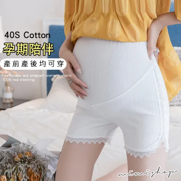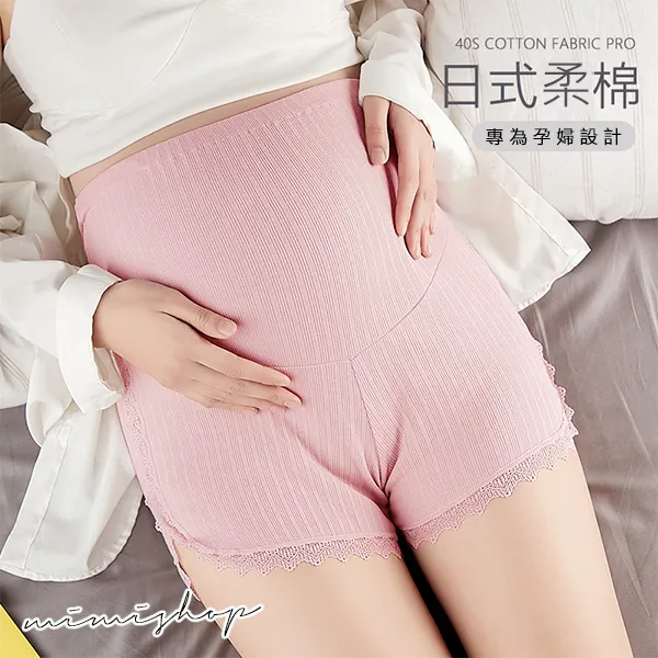 【P61775】高腰不掉檔設計 美感螺紋蕾絲孕婦褲 安全褲 防走光