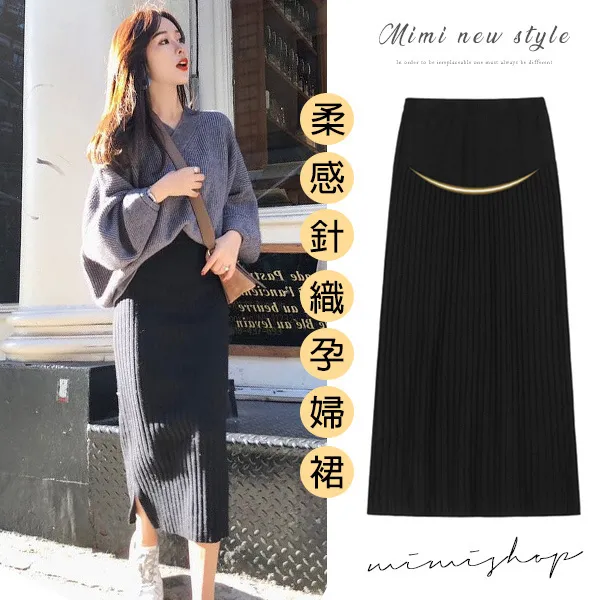 【P61865】優雅復古 兩側開叉針織裙 孕婦裙 柔感溫暖