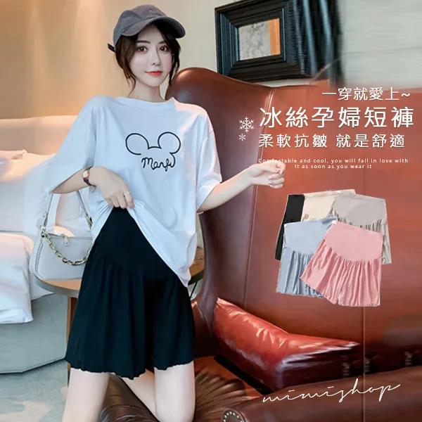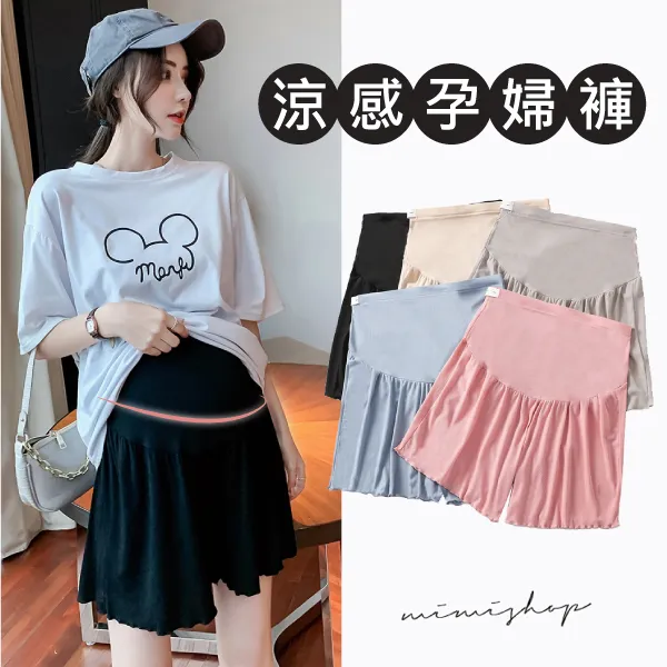 【P61927】就要舒適 冰絲涼感木耳邊短褲 孕婦褲 安全褲