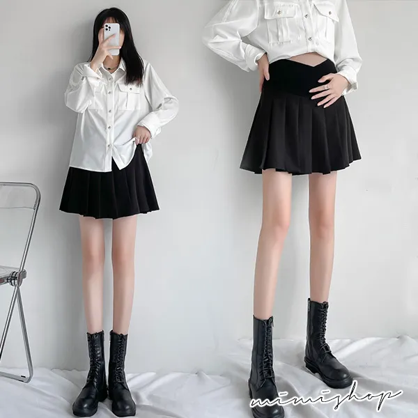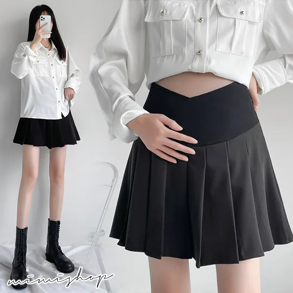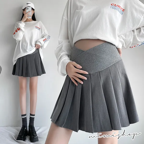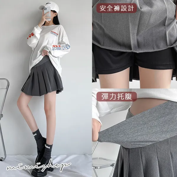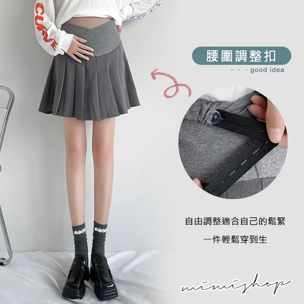 【P61973】時尚好穿搭 安全褲設計 不勒肚交叉彈力孕婦裙 百褶裙