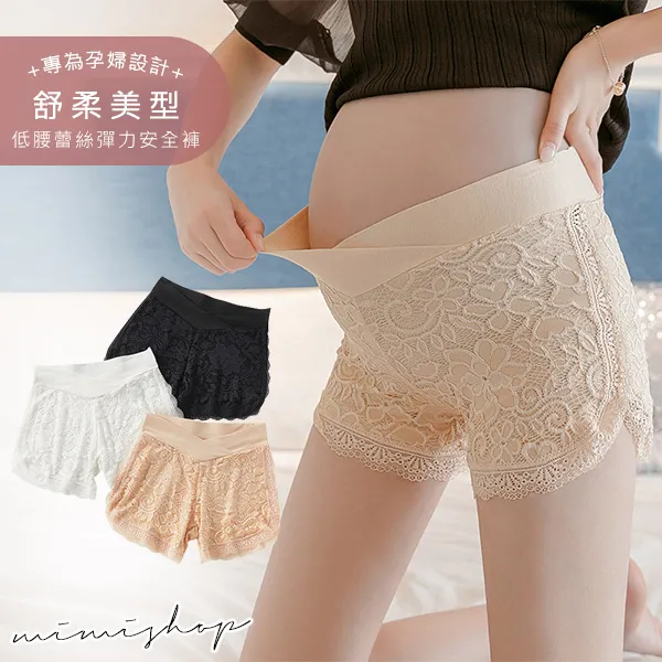 【P62013】美好舒適 低腰蕾絲彈力安全褲 孕婦褲 孕期產後都好搭