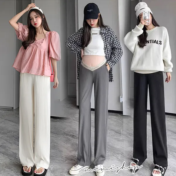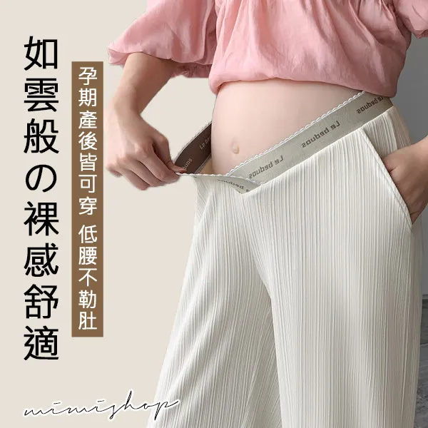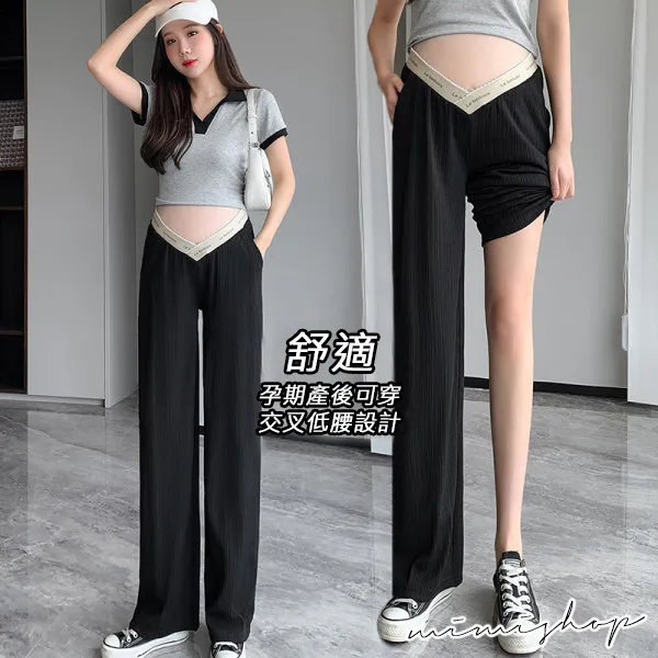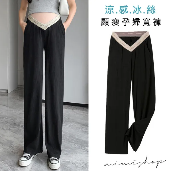 【P62155】修長不束縛 低腰冰絲垂感寬褲 孕婦褲 休閒褲