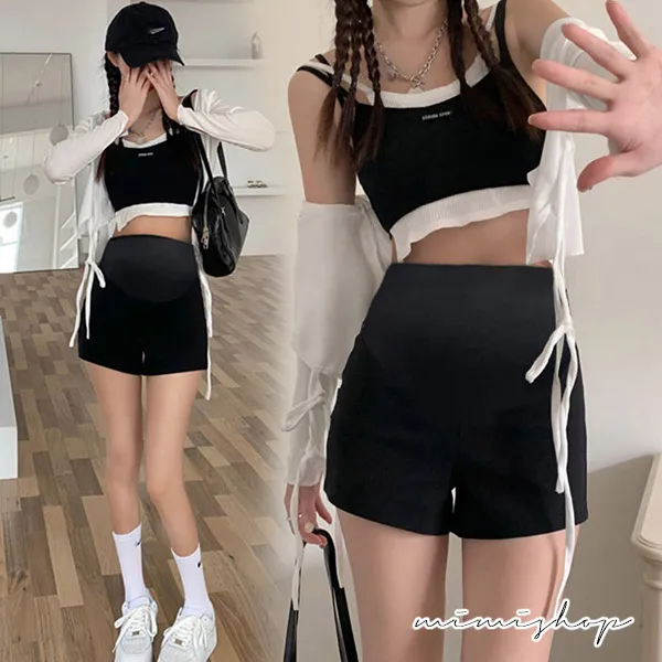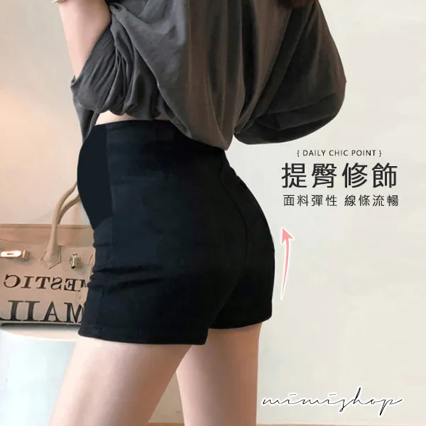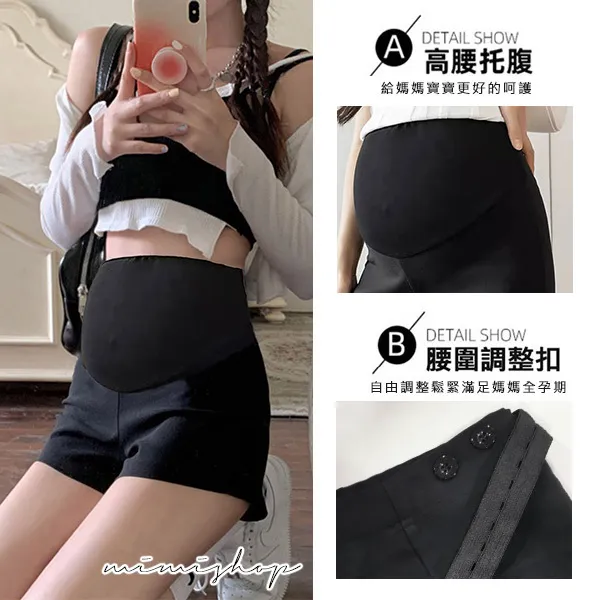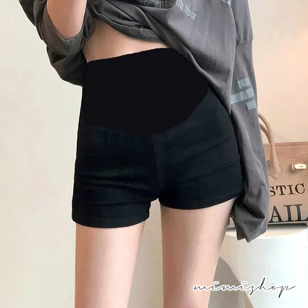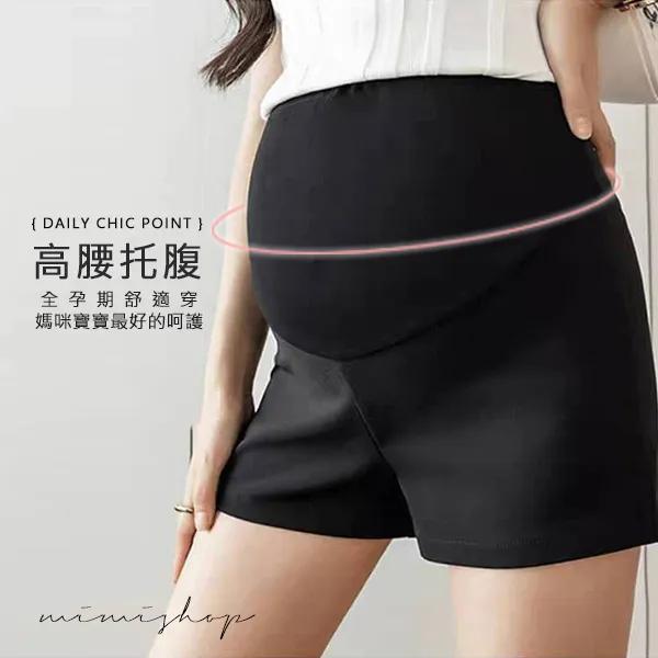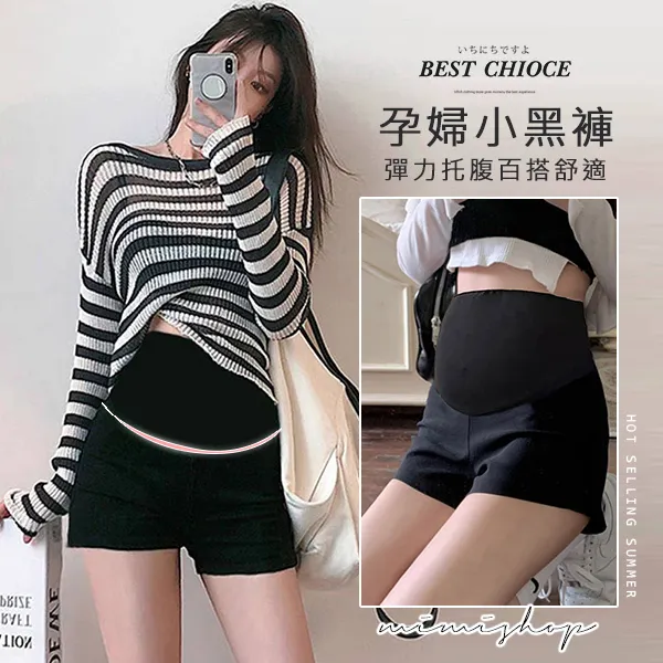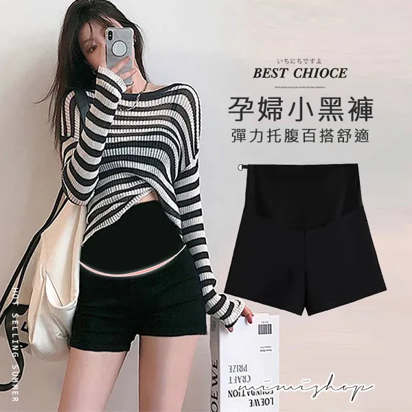 【P62166】百搭小黑褲 彈力托腹短褲 孕婦褲 安全褲 下衣失蹤