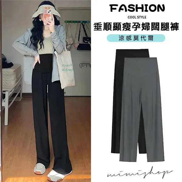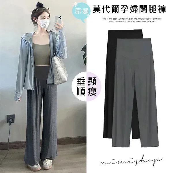 【P62174】百搭舒適 莫代爾涼感闊腿褲 孕婦褲 長褲