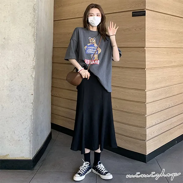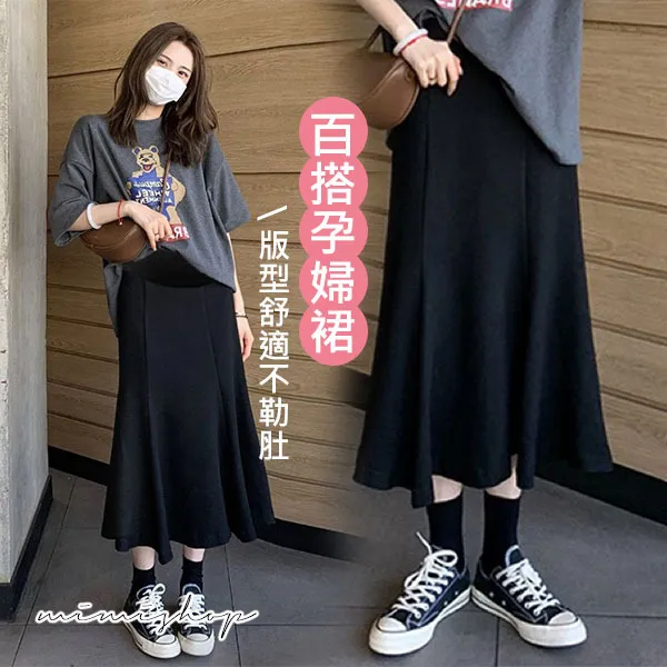 【P62177】美感好版型 後開叉抓摺傘裙 孕婦裙 托腹設計