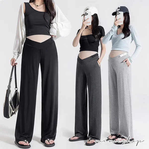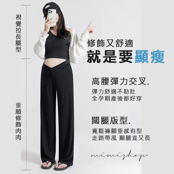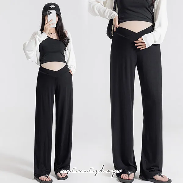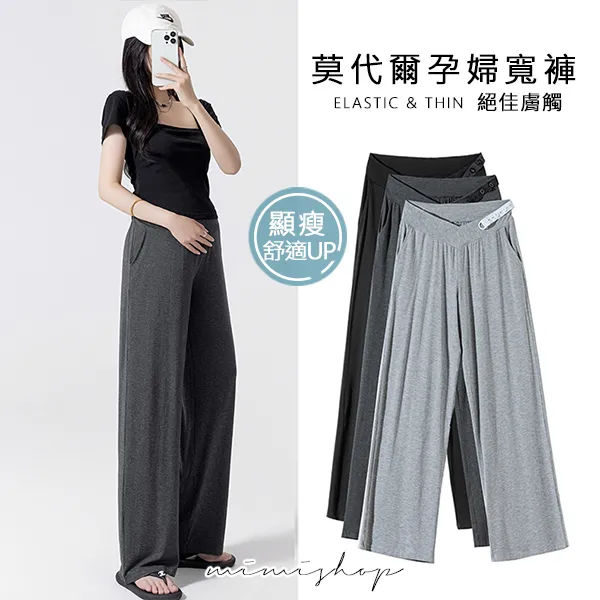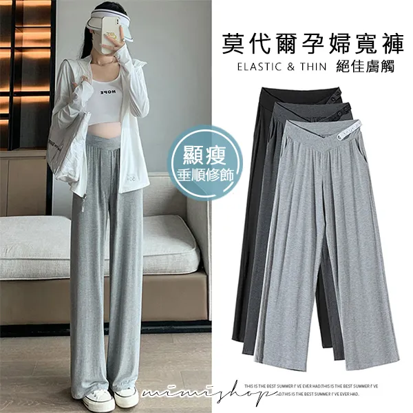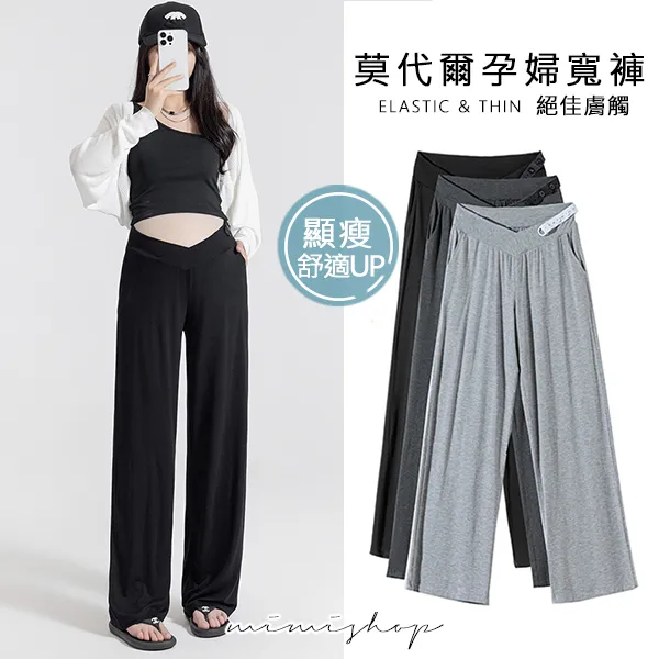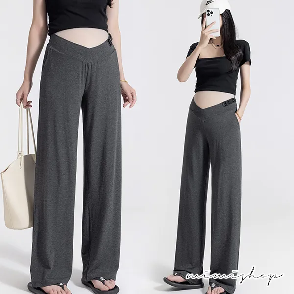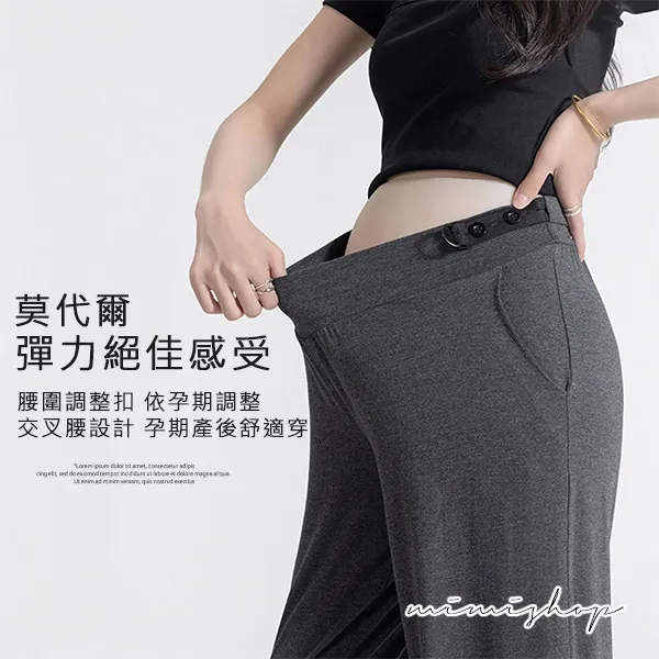 【P62192】百搭顯瘦 低腰不勒肚莫代爾防曬褲 闊腿褲 孕婦褲