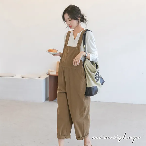 【P62206】自然率真 優質雙扣背帶長褲 吊帶褲 孕婦褲