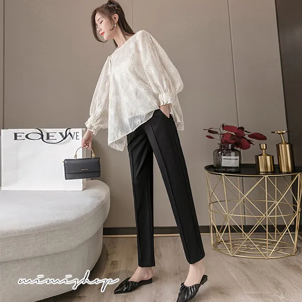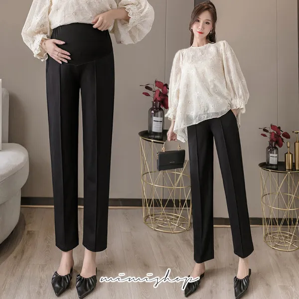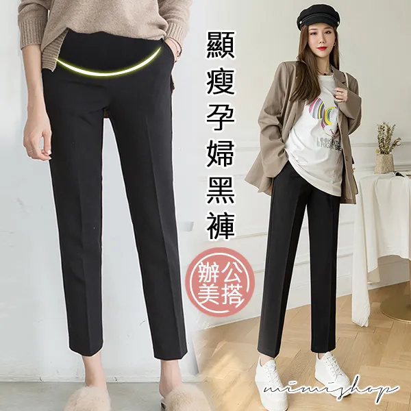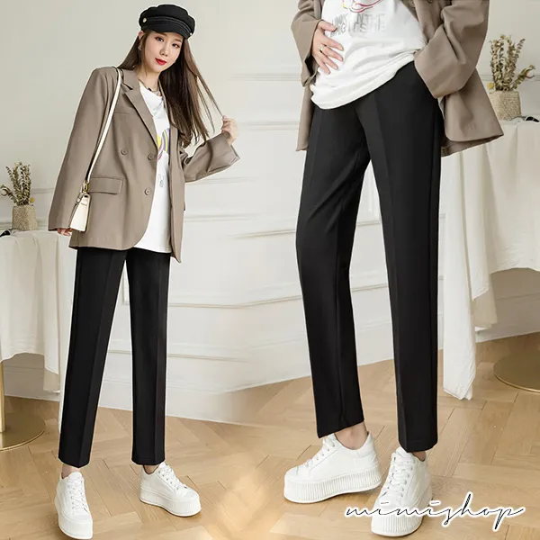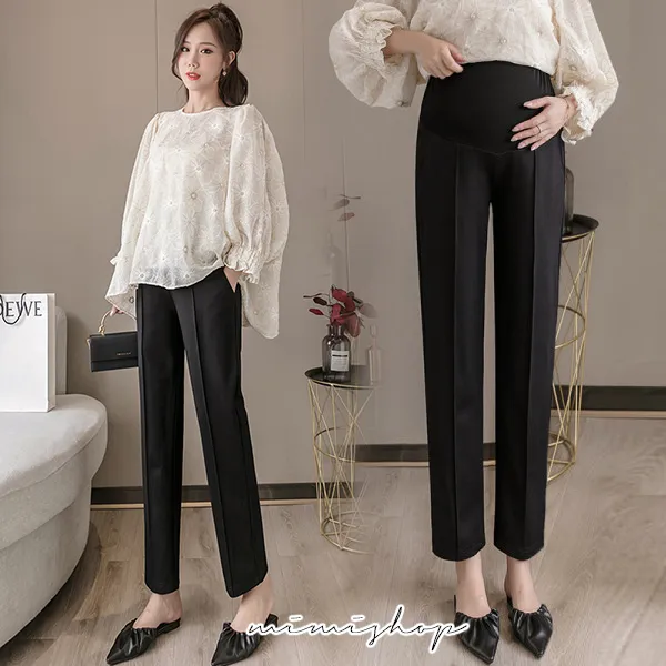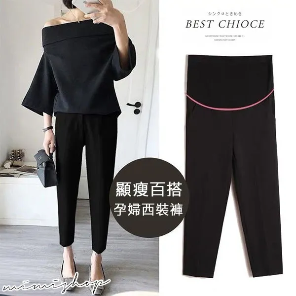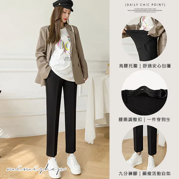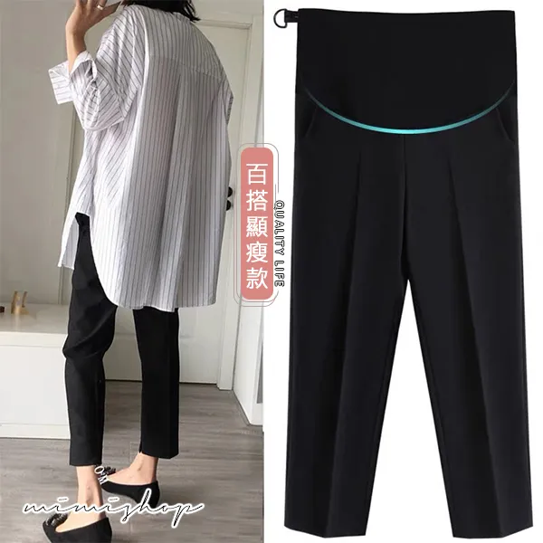 【P62216】顯瘦媽咪職業褲 孕婦褲 九分褲 托腹設計