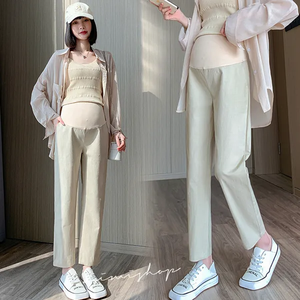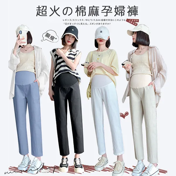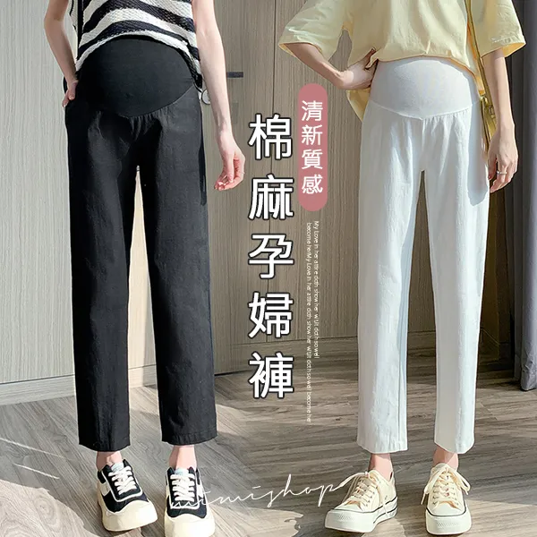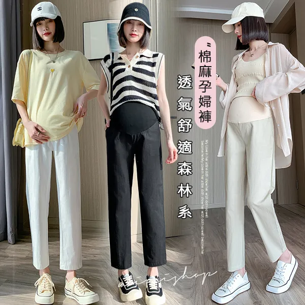 【P62243】森林系舒適 棉麻透氣哈倫褲 九分褲 孕婦褲