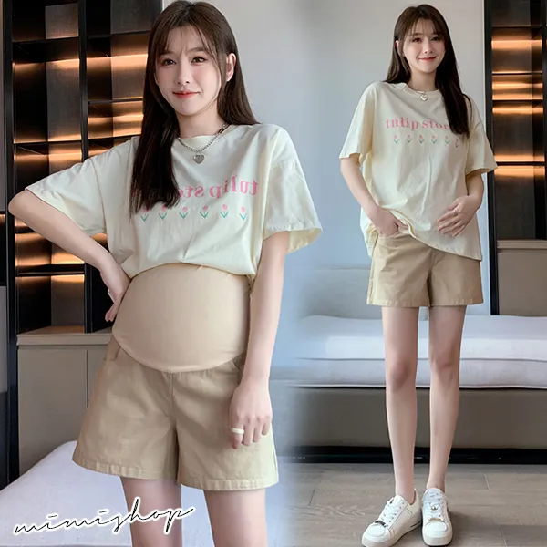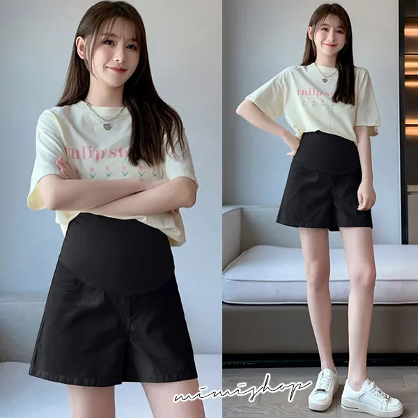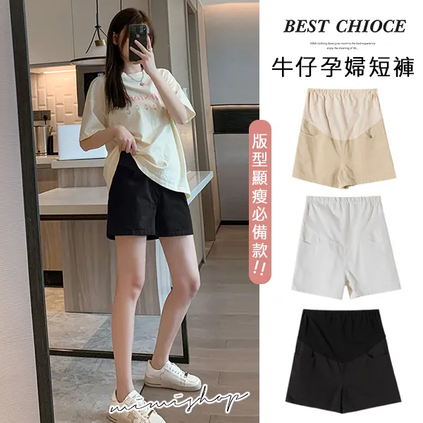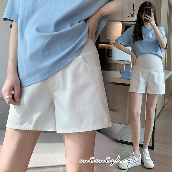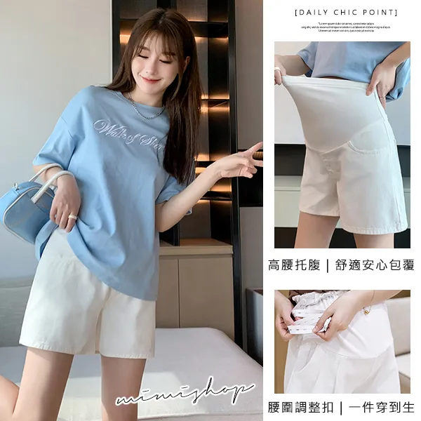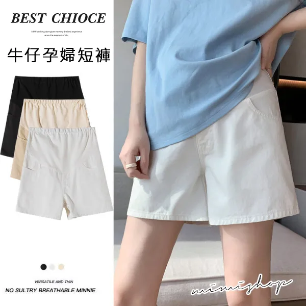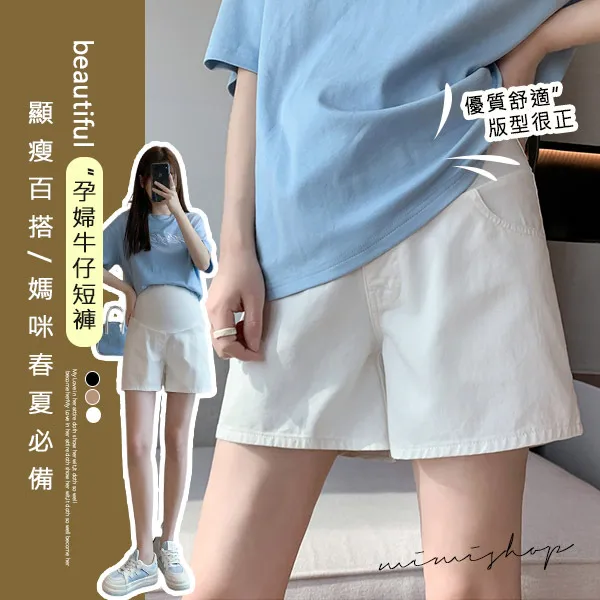 【P62247】清新夏日 好版型 水洗牛仔短褲 孕婦褲