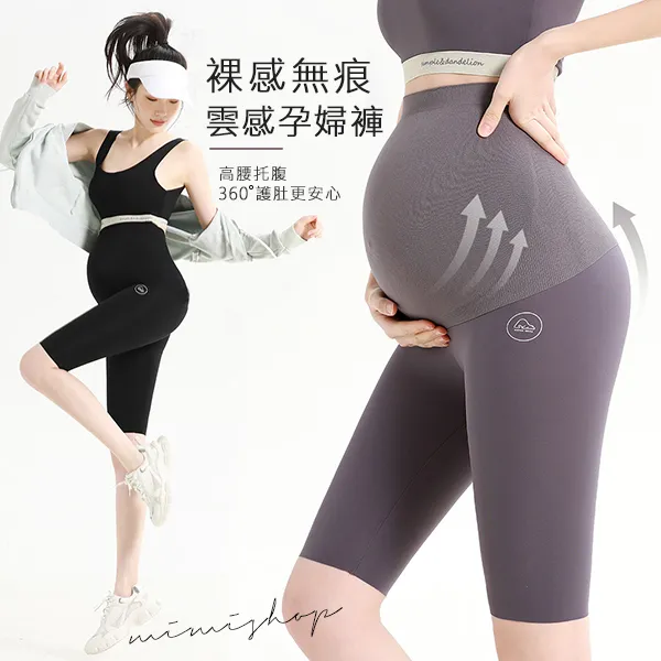 【P62251】雲感芭比褲 透氣鯊魚皮褲 孕婦褲 五分褲 瑜珈褲