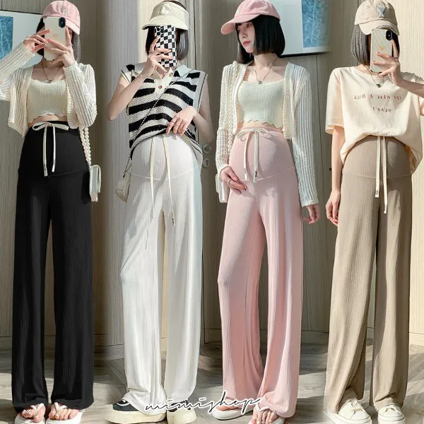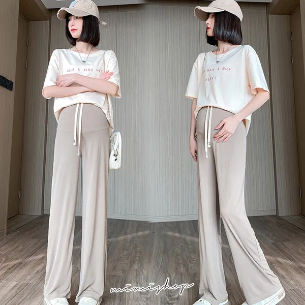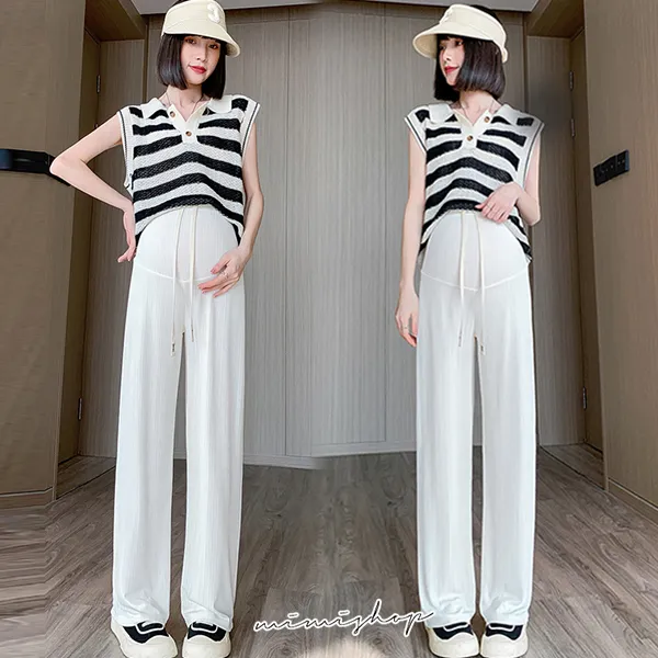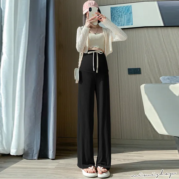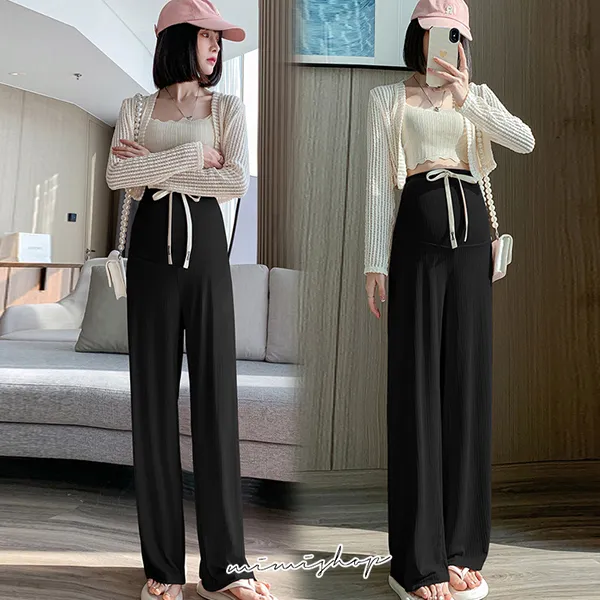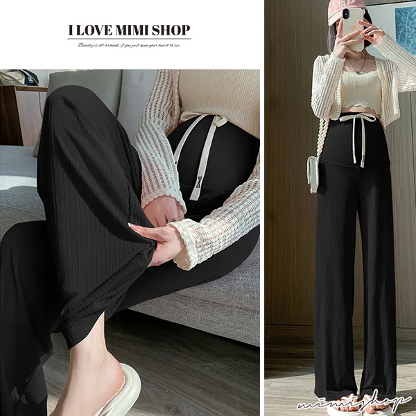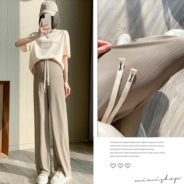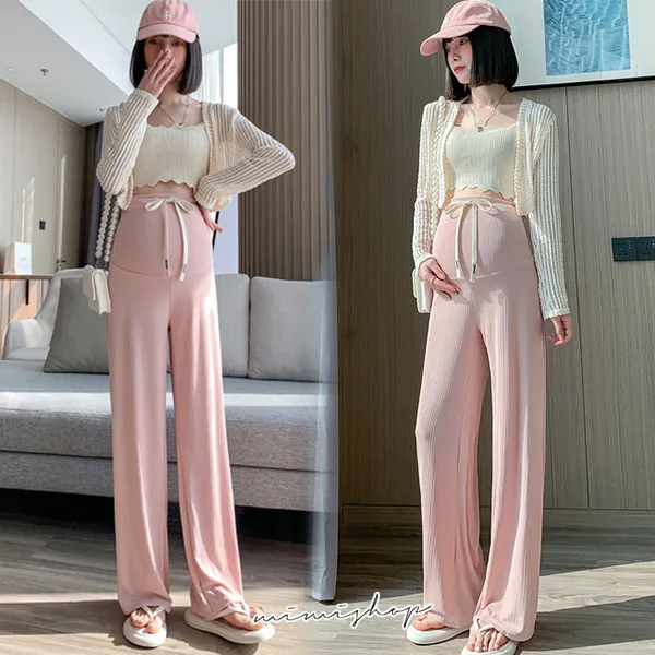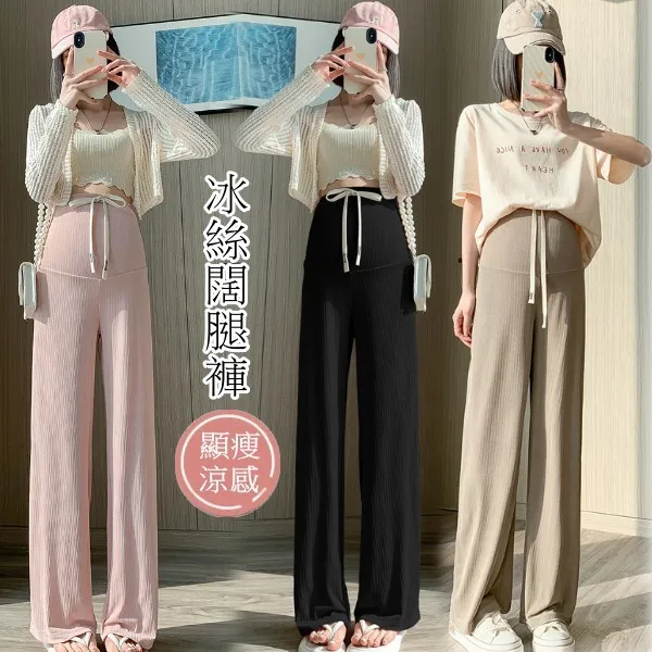 【P62252】顯瘦百搭 寬鬆垂感綁帶休閒褲 冰絲闊腿褲 孕婦褲