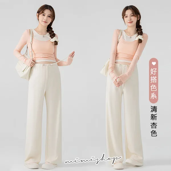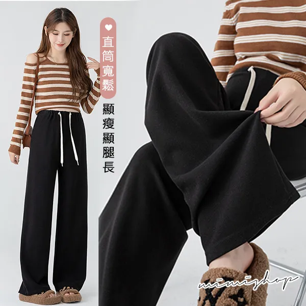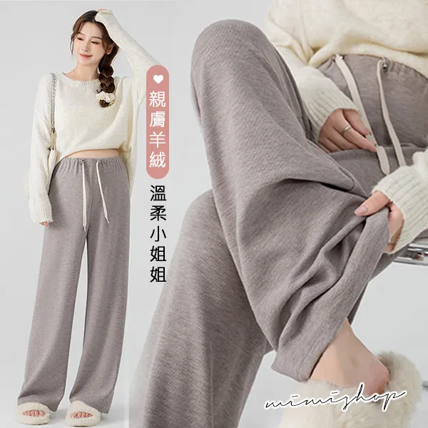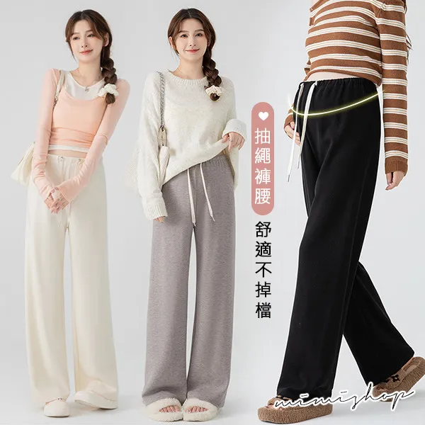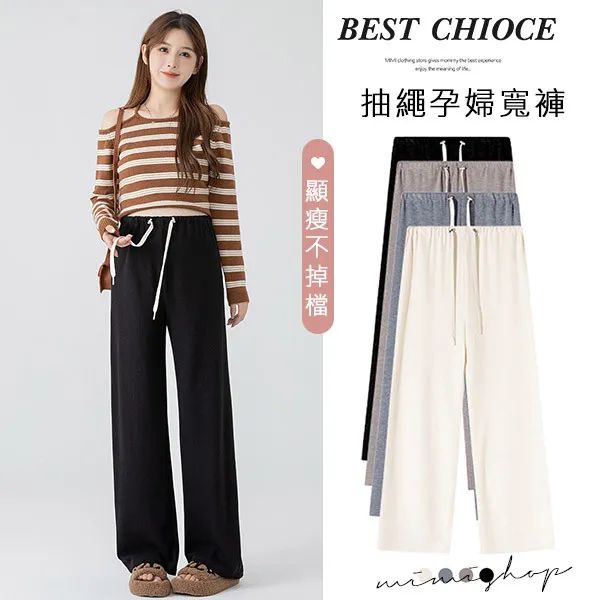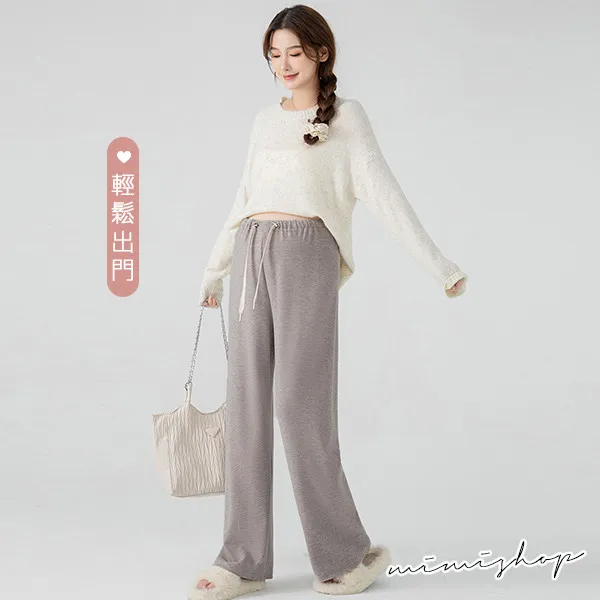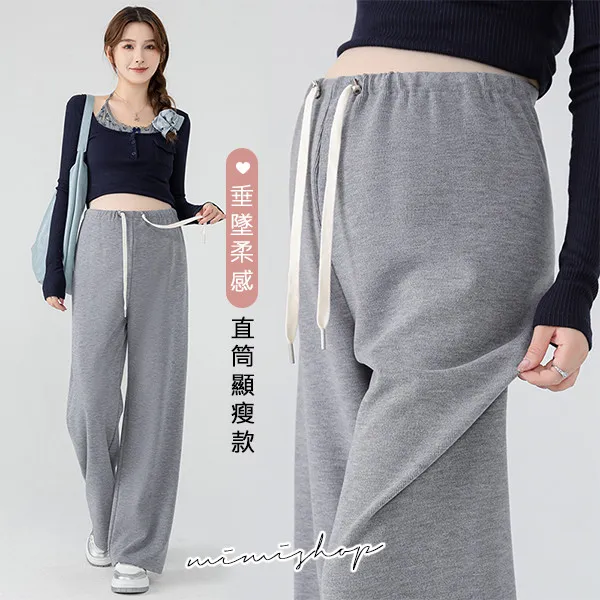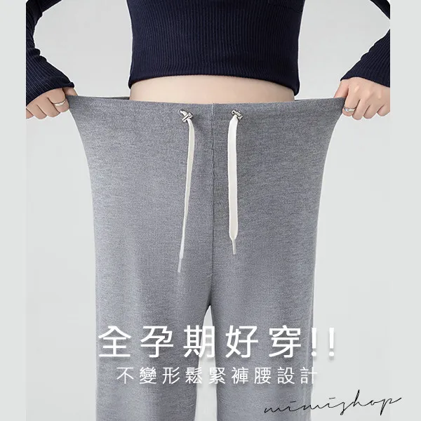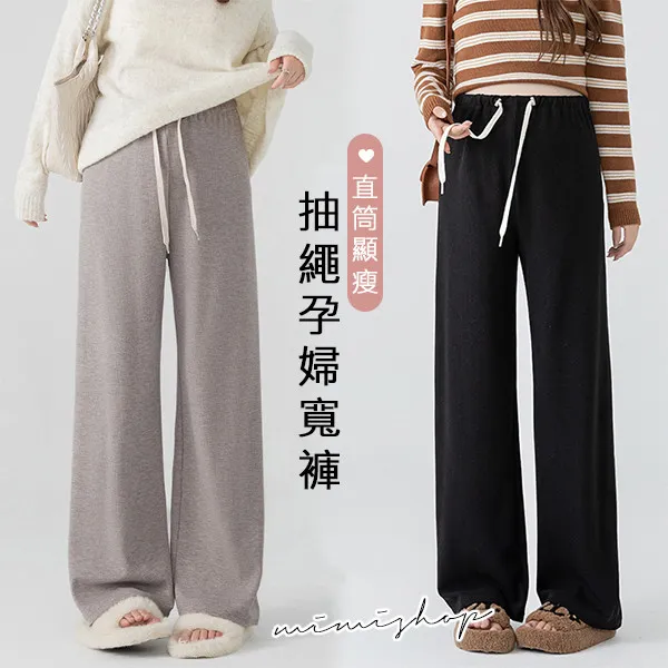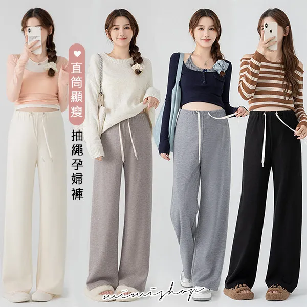 【P62275】舒適不掉檔 中間抽繩羊絨孕婦褲 直筒褲 產後繼續穿